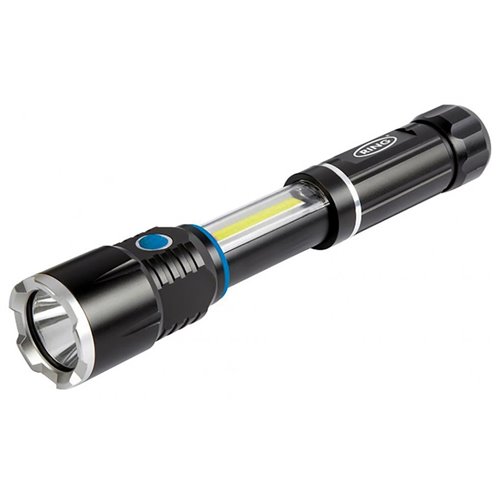 Torcia/lampada a led telescopica in alluminio, provvista di base magnetica per l'utilizzo a mani libere. Torcia con potenza fino a 220 lumen e lampada con funzione luce alta (250 lumen) o bassa (110 lumen). Profondità fascio luminoso: 80 m. Autonomia: fino a 5.5 ore (torcia), fino a 13.5 ore (luce alta), fino a 17 ore (luce bassa). Alimentazione con 4 batterie AAA (incluse). Dimensioni: 170 (A) x 42 (L) x 42 (P) mm.