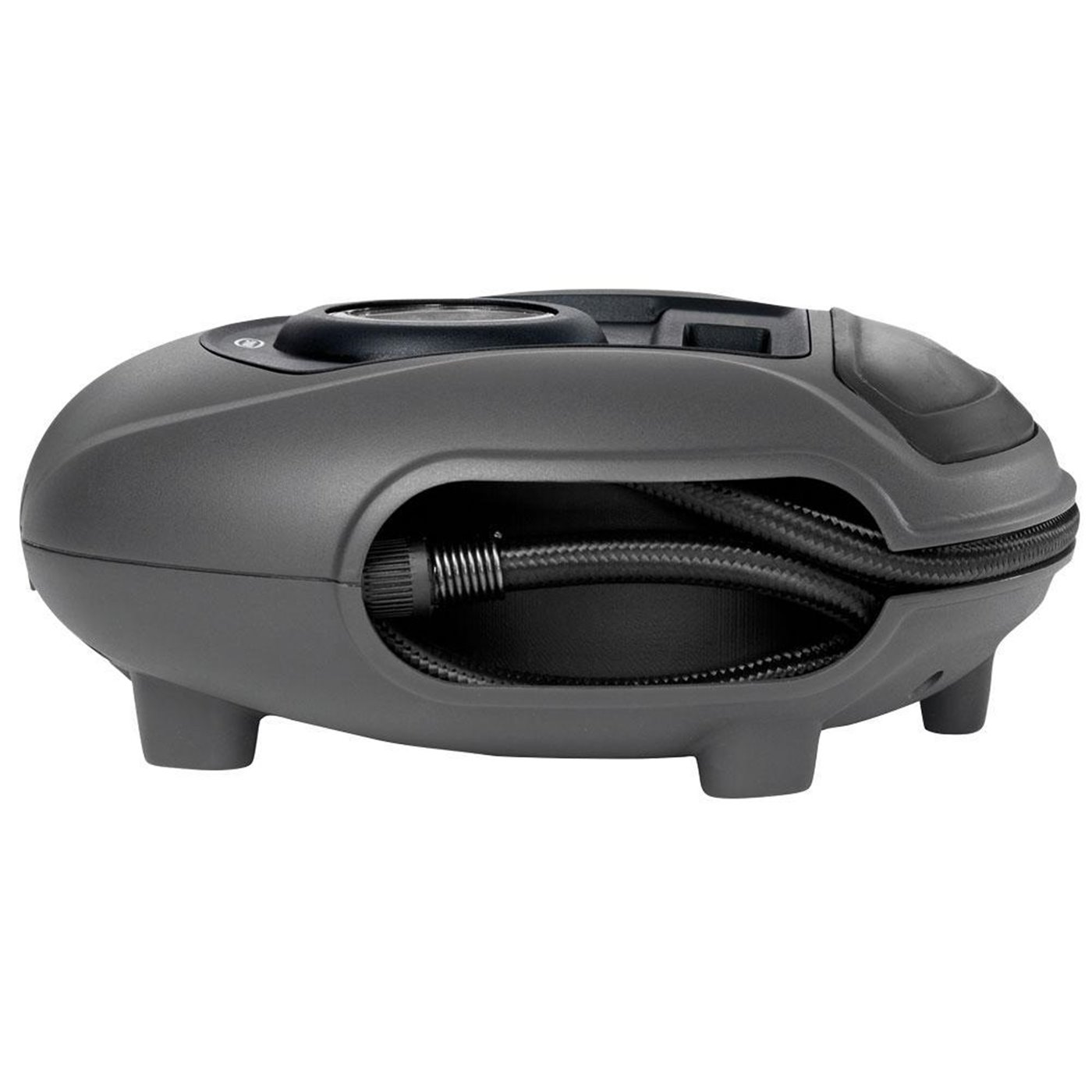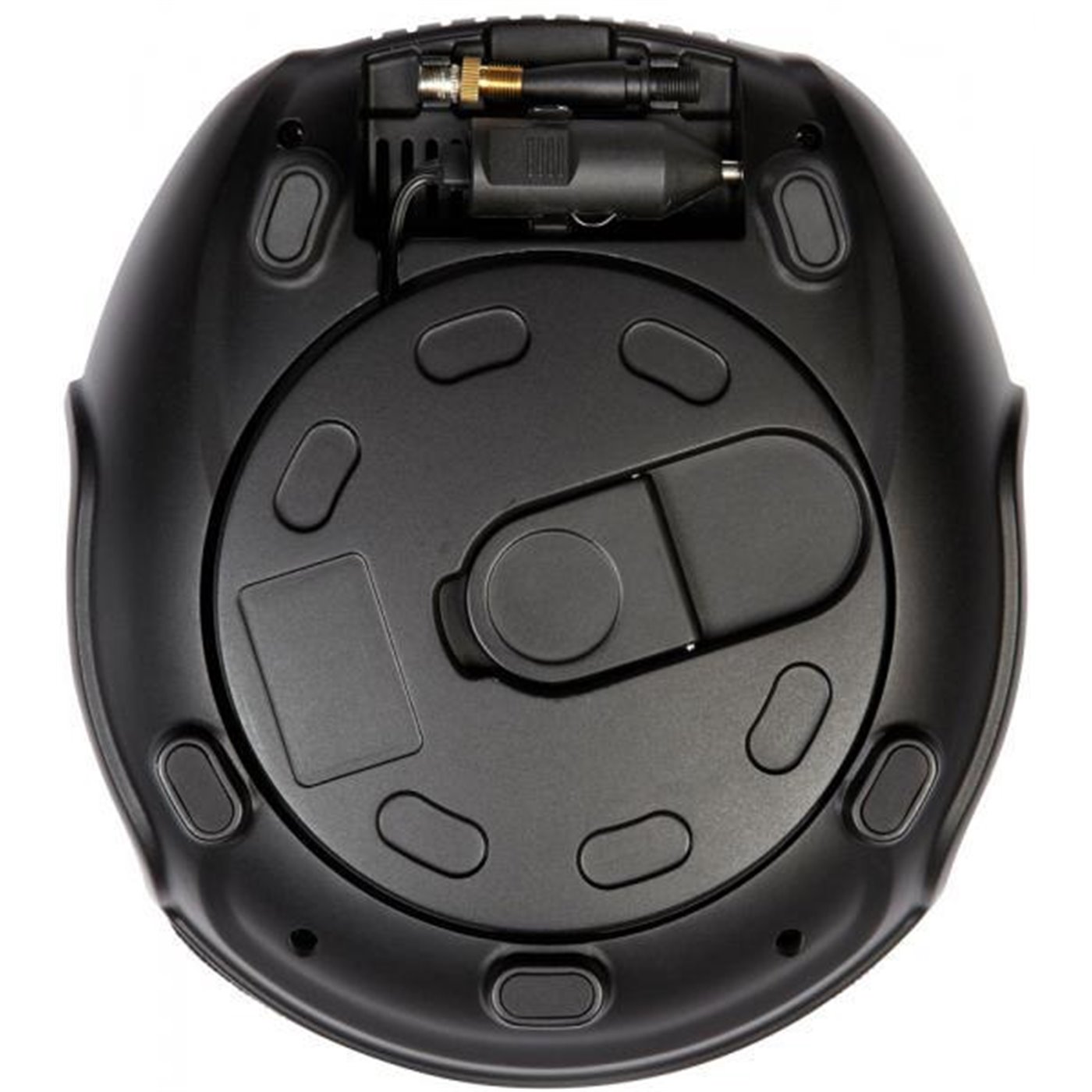 Compressore 12V con manometro analogico da 40 mm di diametro in PSI, BAR e kPA. Provvisto di tubo di gonfiaggio flessibile progettato per evitare eventuali grovigli e di raccordo valvola in grado di raggiungere agevolmente anche le valvole pneumatico posizionate in modo scorretto. Design piatto per la massima stabilità durante l'uso. Ampio bottone On/Off per un facile utilizzo con mani sporche/unte o in condizioni di scarsa illuminazione. Vano portaoggetti per tappi valvola. Cavo di alimentazione da 3 m con avvolgi cavo e spina con fusibile 12V DC. Kit di 3 adattatori di gonfiaggio per bici, materassini ed altre attrezzature in dotazione. Gonfia un pneumatico in meno di 4.5 minuti (dato stimato considerando una pressione di gonfiaggio di 35psi su uno pneumatico da 13"). DATI TECNICI: tensione in ingresso 12 V - potenza 120 W - assorbimento max 10 A - pressione max 100 PSI - lunghezza tubo aria 50 cm - lunghezza cavo 3 m - dimensioni: 197A x 180L x 80P mm.