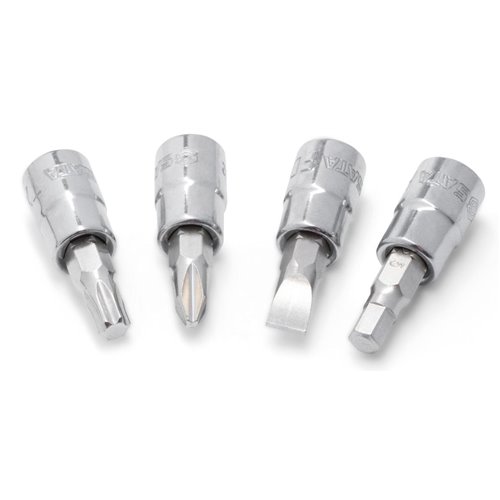 Set composto da: 1 cricchetto a sgancio rapido, 14 bussole metriche esagonali 3,5/4/4,5/5/5,5/6/7/8/9/10/11/12/13/14 mm, 4 bussole metriche esagonali lunghe 8/10/12/13 mm, 18 bussole con esagono da 1/4” e inserti (a taglio 4/5,5/6,5 mm, Phillips #1/#2, Pozidriv #1/#2, Torx T10/T15/T20/T25/T30/T40, esagonale 3/4/5/6/8 mm), 9 Inserti con esagono da 1/4” lunghezza 25mm (a taglio 4/5/6,5 mm, Phillips #1/#3, Hex 3/4/5/6 mm), 6 accessori (impugnatura a cacciavite con attacco quadro, impugnatura a T con quadro scorrevole, giunto universale, prolunghe da 2”e 4”, adattatore per bit).