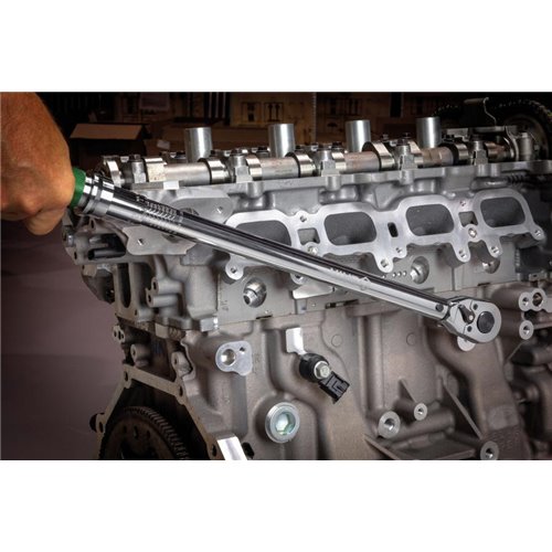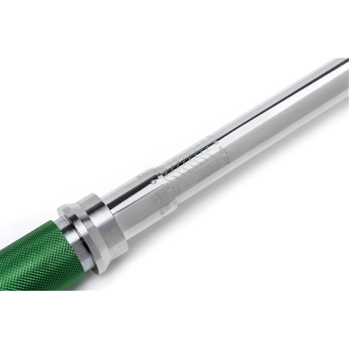 Chiave dinamometrica meccanica realizzata in acciaio temperato per offrire massima resistenza e durevolezza e prestazioni di lunga durata. Coppia regolabile da 68 a 340Nm, con scatto e/o impulso sonoro quando viene raggiunto il valore desiderato e collare di bloccaggio di tipo Detent che impedisce la modifica accidentale della coppia impostata. Provvista di testa a goccia e a basso profilo ed interruttore on/off montato a filo per un migliore accesso in spazi ristretti. Impugnatura zigrinata per il massimo comfort e controllo. Custodia protettiva ad alta resistenza in dotazione. Elevata precisione con deviazione di +/- 3% max. Soddisfa o supera la norma ASME B107.300. Lunghezza: 616 mm.