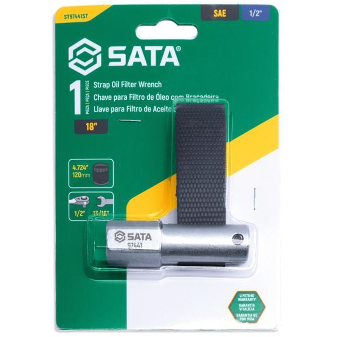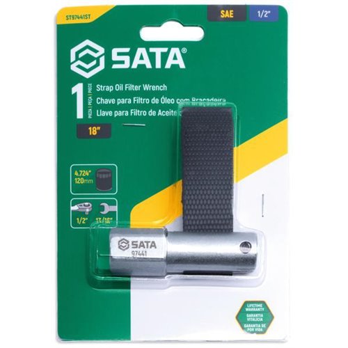 Chiave in acciaio al cromo vanadio con robusta cinghia in nylon. Adatta per filtri dell’olio fino a 120 mm di diametro. Utilizzabile con utensili da 1/2” o 13/16”.