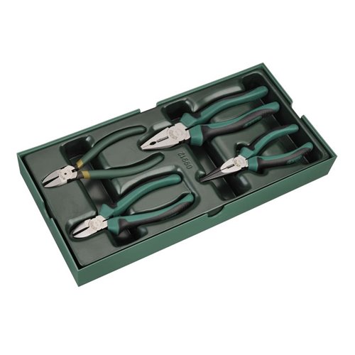 Set a vassoio pinze. Contenuto: 1 pinza becchi lunghi 6”, 1 tronchese diagonale 6”, 1 pinza universale 8”, 1 tronchese materie plastiche 6”.