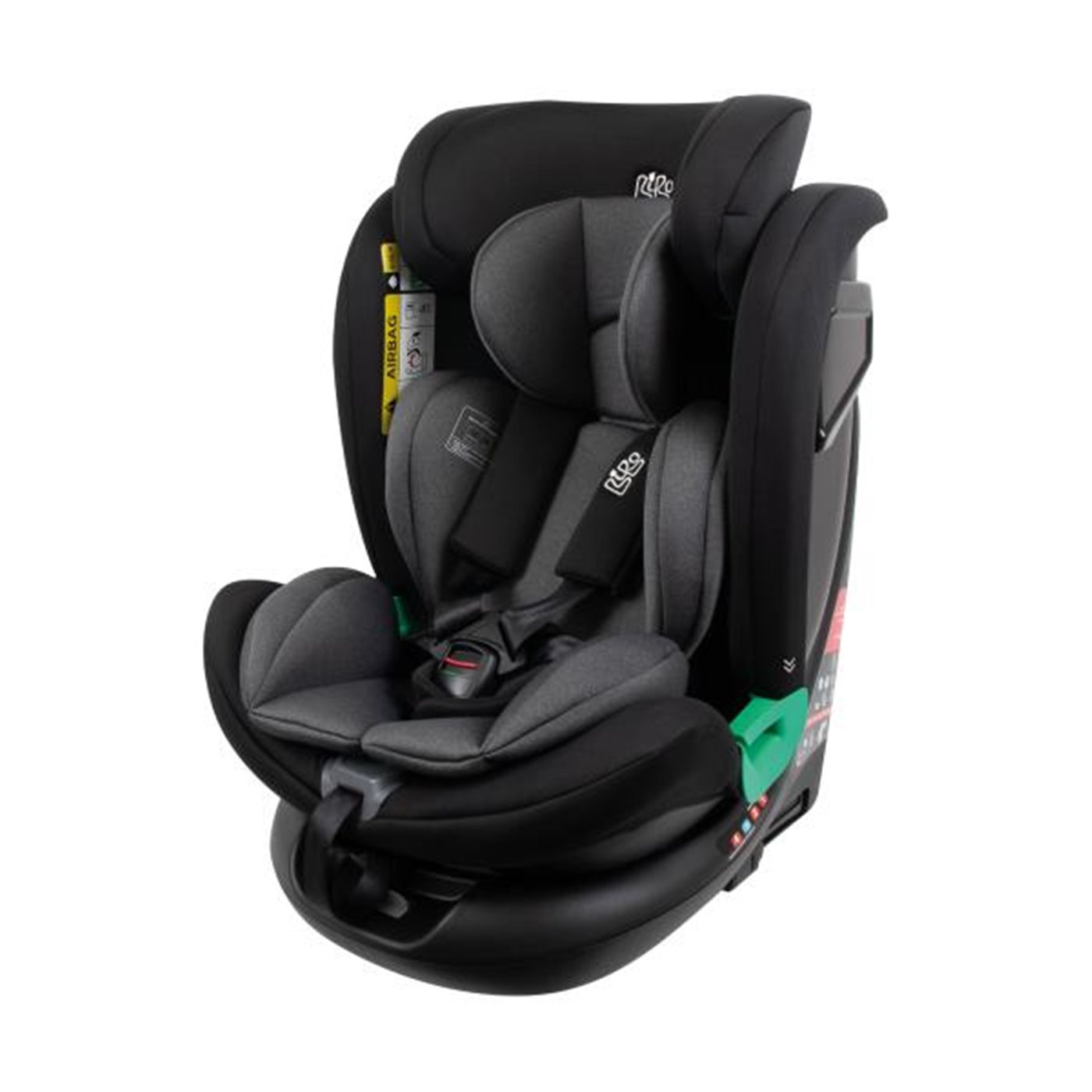 - Installabile in entrambi i sensi di marcia utilizzando i connettori ISOFIX ed il Top Tether integrati oppure la cintura di sicurezza dell'auto