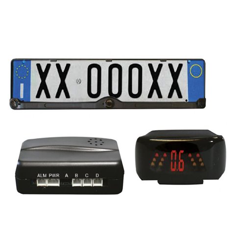 - Kit composto da: portatarga posteriore con 3 sensori orientabili, display LCD wireless, centralina, cavi ed istruzioni