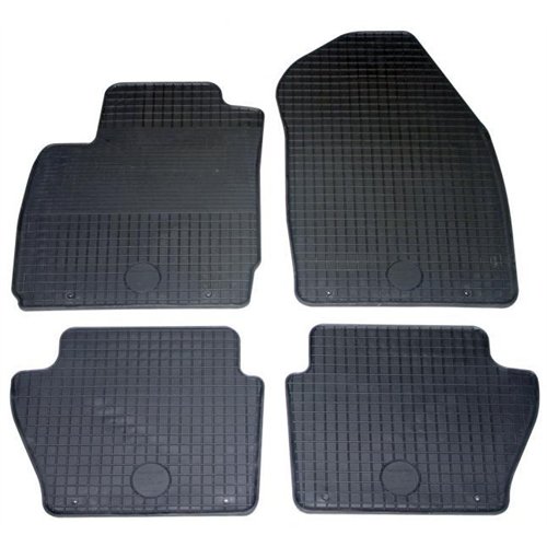 Serie completa 4 tappeti (anteriori+posteriori) in gomma di alta qualità, inodore e facili da pulire. Realizzati su misura: proteggono perfettamente il pianale della vettura senza ricorrere ad adattamenti. Per FORD Fiesta 3/5p. 08>17 (Mk6), Fusion 02> (JU2).