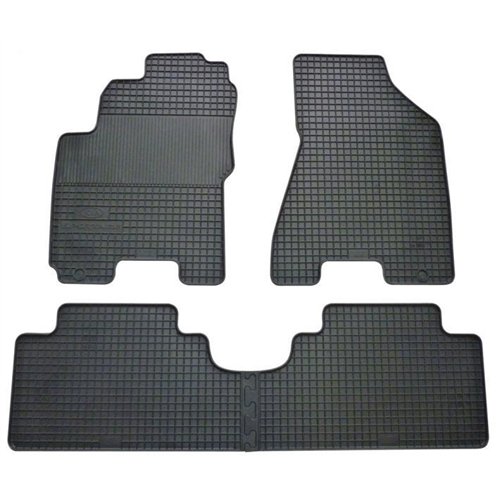 Serie completa 4 tappeti (anteriori+posteriori) in gomma di alta qualità, inodore e facili da pulire. Realizzati su misura: proteggono perfettamente il pianale senza ricorrere ad adattamenti. Con fori per il fissaggio ai fix point originali del veicolo. Per KIA Sportage II 04>10 (JE, KM).