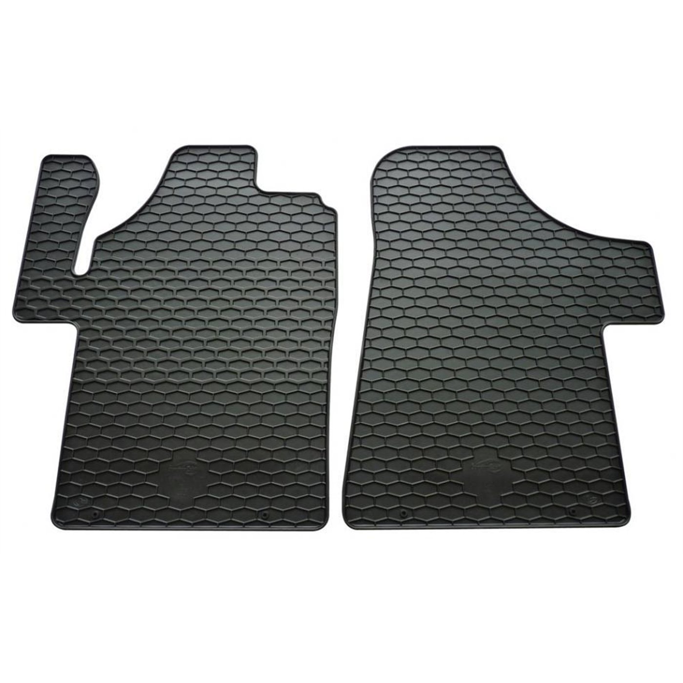 Coppia tappeti anteriori in gomma di alta qualità, inodore e facili da pulire. Realizzati su misura: proteggono perfettamente il pianale della vettura senza ricorrere ad adattamenti. Per MERCEDES Viano (anteriori) / Vito 03>14 (W639).