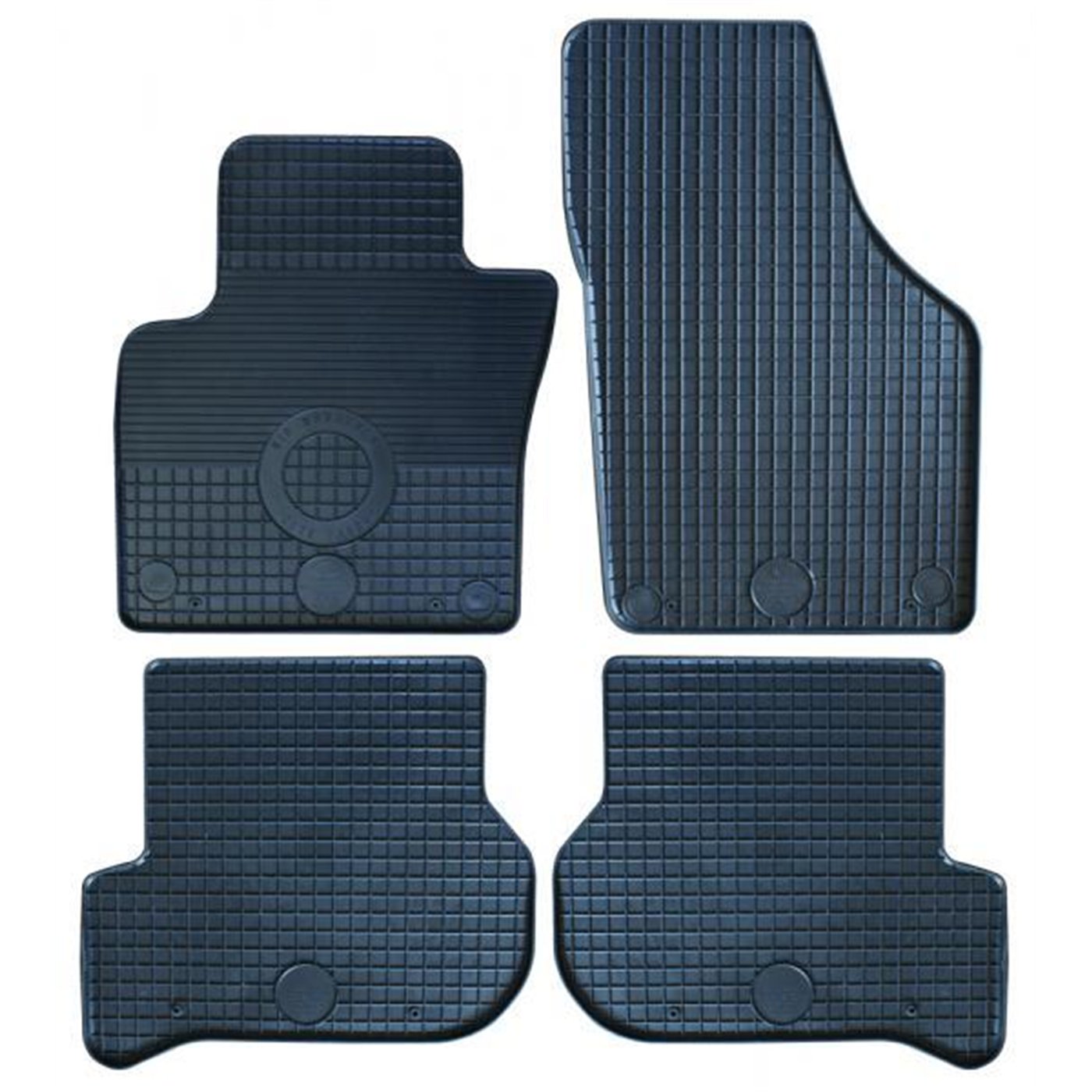 Serie completa 4 tappeti (anteriori+posteriori) in gomma di alta qualità, inodore e facili da pulire. Realizzati su misura: proteggono perfettamente il pianale senza ricorrere ad adattamenti. Con fori per il fissaggio ai fix point originali del veicolo. Per SEAT Altea / Altea XL 04>09 (5P1, 5P5, 5P8), Leon II 05>09 (1P, 1P1), Toledo III 04>09 (5P, 5P2).