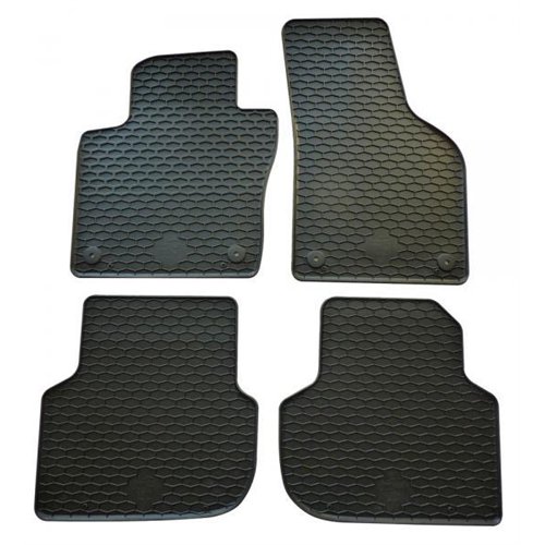 Serie completa 4 tappeti (anteriori+posteriori) in gomma di alta qualità, inodore e facili da pulire. Realizzati su misura: proteggono perfettamente il pianale senza ricorrere ad adattamenti. Con bottoni in plastica per il fissaggio ai fix point originali del veicolo. Per VOLKSWAGEN Jetta VI 10> (1B).