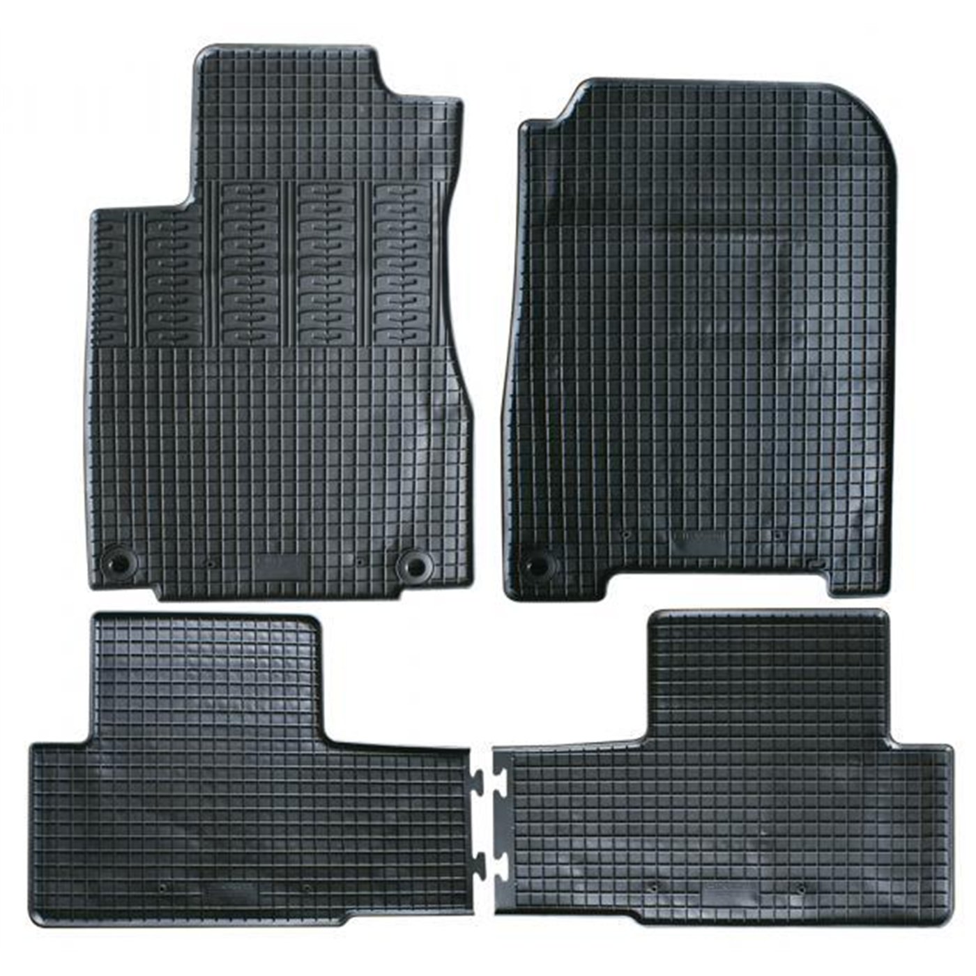Serie completa 4 tappeti (anteriori+posteriori) in gomma di alta qualità, inodore e facili da pulire. Realizzati su misura: proteggono perfettamente il pianale senza ricorrere ad adattamenti. Con bottoni in plastica per il fissaggio ai fix point originali del veicolo. Per HONDA CR-V IV 12>18 (RE).