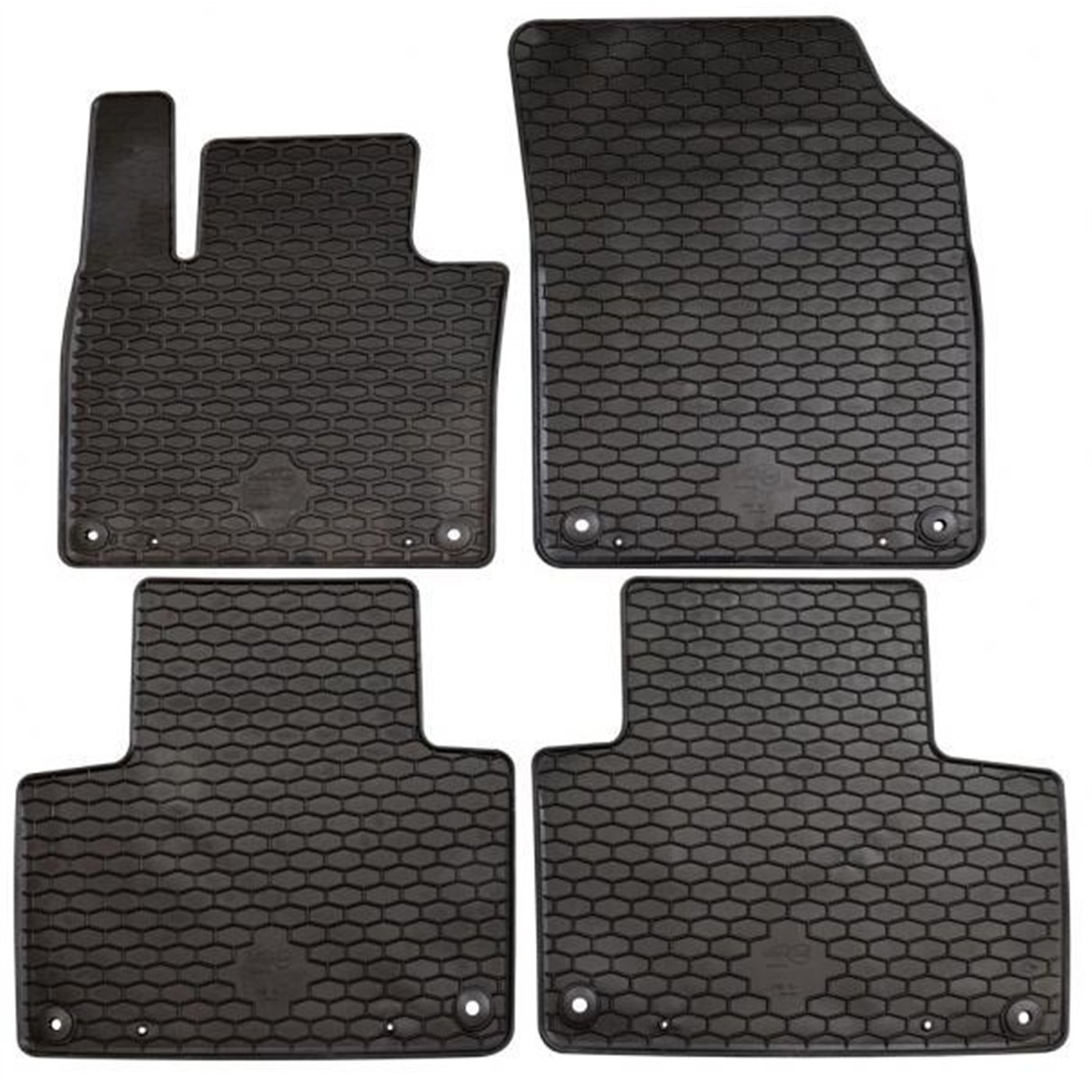 Serie completa 4 tappeti (anteriori+posteriori) in gomma di alta qualità, inodore e facili da pulire. Realizzati su misura: proteggono perfettamente il pianale senza ricorrere ad adattamenti. Con bottoni in plastica per il fissaggio ai fix point originali del veicolo. Per VOLVO XC90 II 14> (256) (anche ibrida).