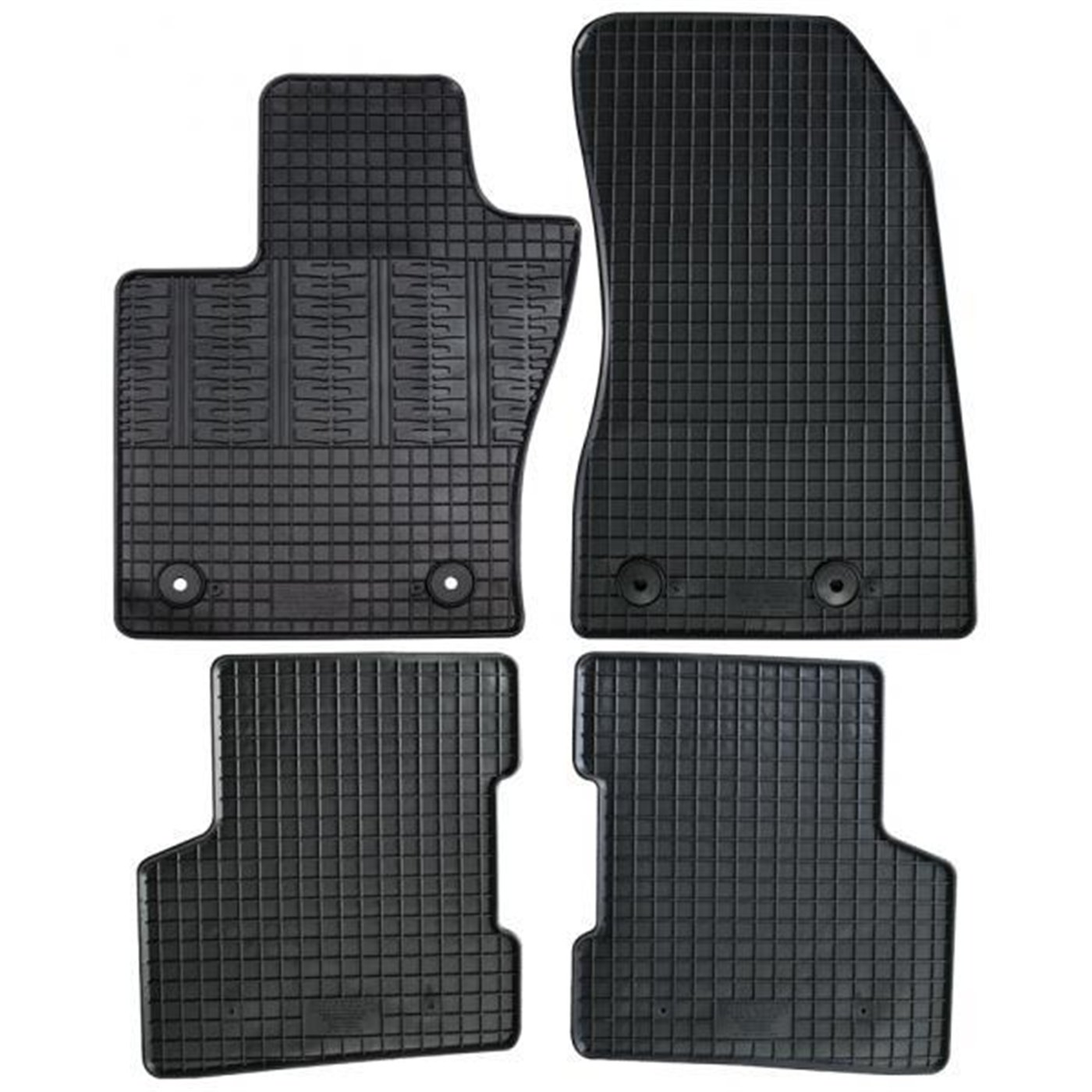 Serie completa 4 tappeti (anteriori+posteriori) in gomma di alta qualità, inodore e facili da pulire. Realizzati su misura: proteggono perfettamente il pianale senza ricorrere ad adattamenti. Con bottoni in plastica per il fissaggio ai fix point originali del veicolo. Per JEEP Renegade 14>18(BU, BU1) (interasse fix lato pass. = 20 cm).