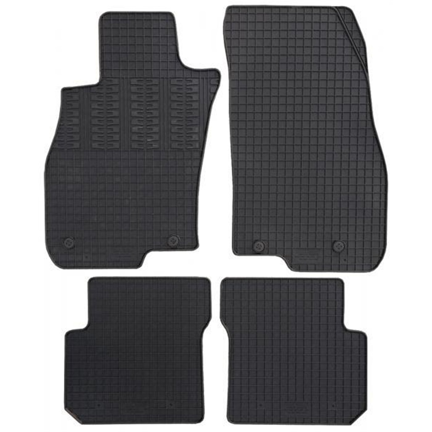 Serie completa 4 tappeti (anteriori+posteriori) in gomma di alta qualità, inodore e facili da pulire. Realizzati su misura: proteggono perfettamente il pianale senza ricorrere ad adattamenti. Con bottoni in plastica per il fissaggio ai fix point originali del veicolo. Per ALFA ROMEO Mito 08>16, 16> (955).