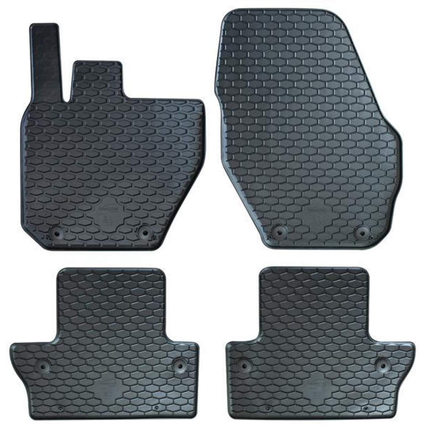 Serie completa 4 tappeti (anteriori+posteriori) in gomma di alta qualità, inodore e facili da pulire. Realizzati su misura: proteggono perfettamente il pianale senza ricorrere ad adattamenti. Con bottoni in plastica per il fissaggio ai fix point originali del veicolo. Per VOLVO S60 II 10>19 (Y20,134), V60 I 10>18 (155,157) (anche Cross Country).