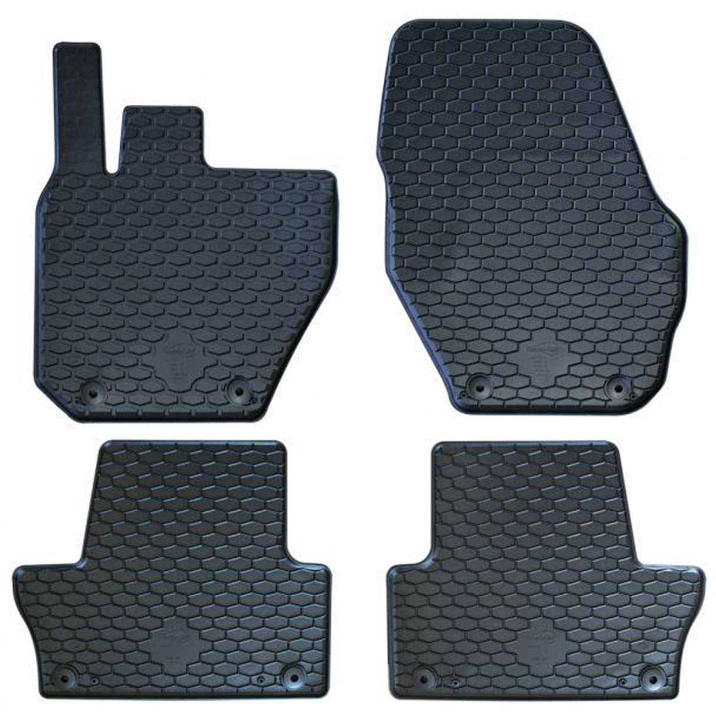 Serie completa 4 tappeti (anteriori+posteriori) in gomma di alta qualità, inodore e facili da pulire. Realizzati su misura: proteggono perfettamente il pianale senza ricorrere ad adattamenti. Con bottoni in plastica per il fissaggio ai fix point originali del veicolo. Per VOLVO XC60 I 08>17 (156).