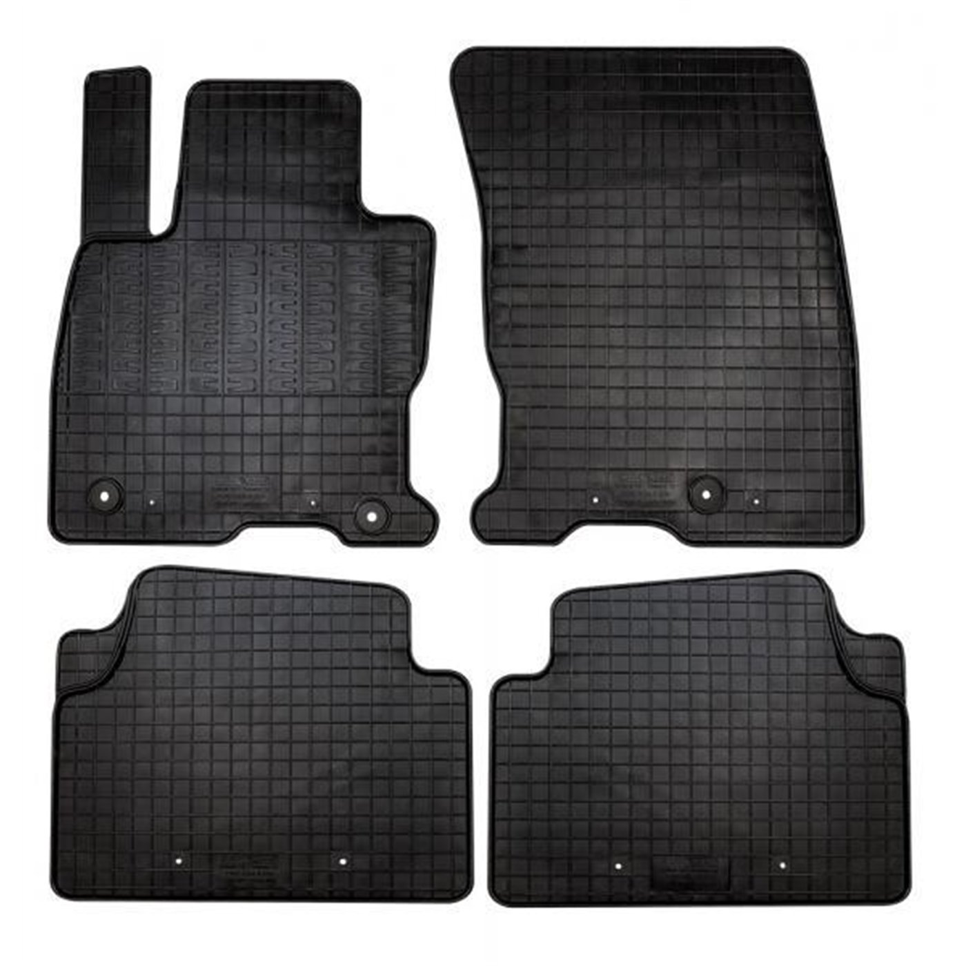 Serie completa 4 tappeti (anteriori+posteriori) in gomma di alta qualità, inodore e facili da pulire. Realizzati su misura: proteggono perfettamente il pianale della vettura senza ricorrere ad adattamenti. Con bottoni in plastica per il fissaggio ai fix point originali del veicolo. Per FORD Kuga 19>24, 24> (Mk3) (anche ibrida).