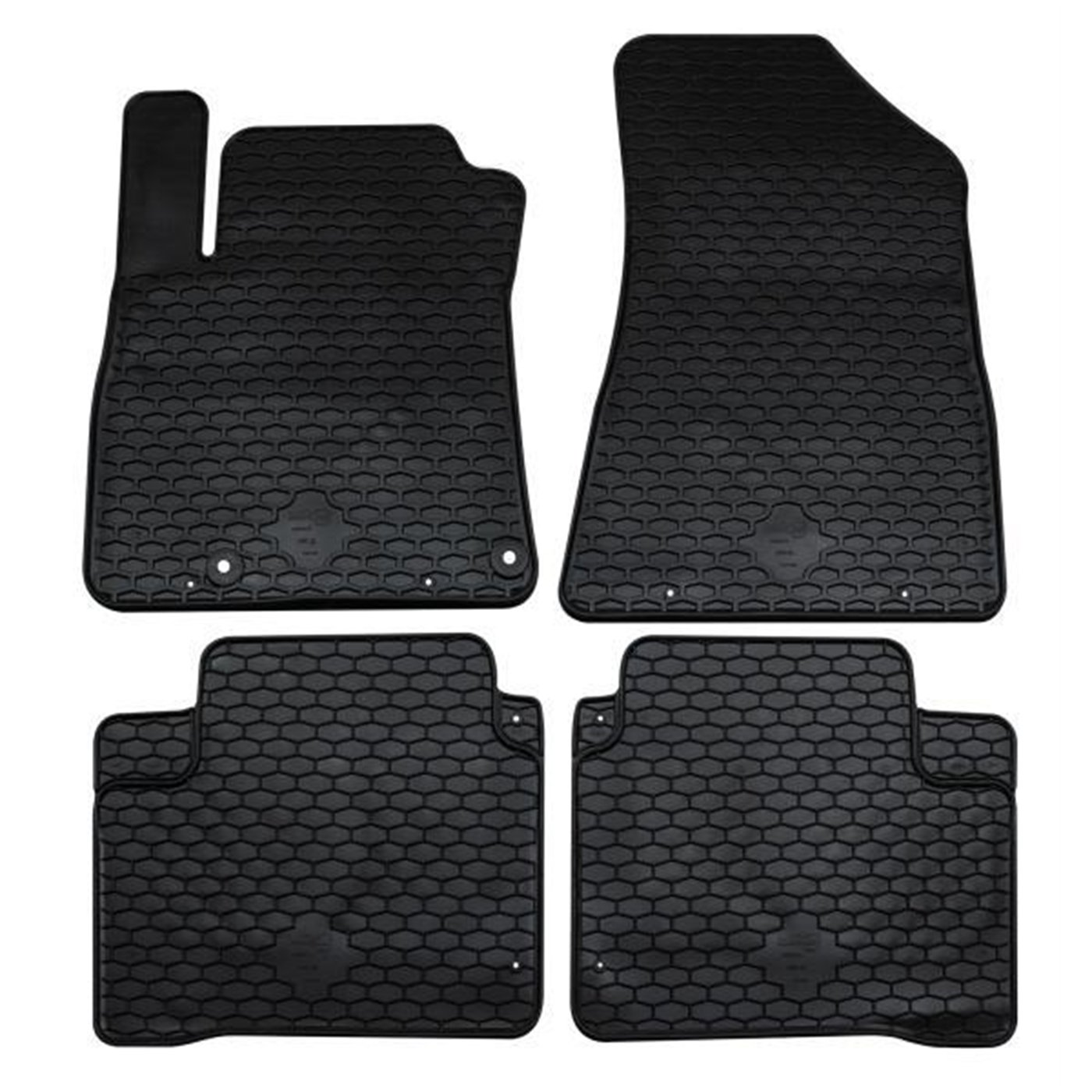 Serie completa 4 tappeti (anteriori+posteriori) in gomma di alta qualità, inodore e facili da pulire. Realizzati su misura: proteggono perfettamente il pianale della vettura senza ricorrere ad adattamenti. Con bottoni in plastica per il fissaggio ai fix point originali del veicolo. Per KIA Niro 22> (no elettrica).