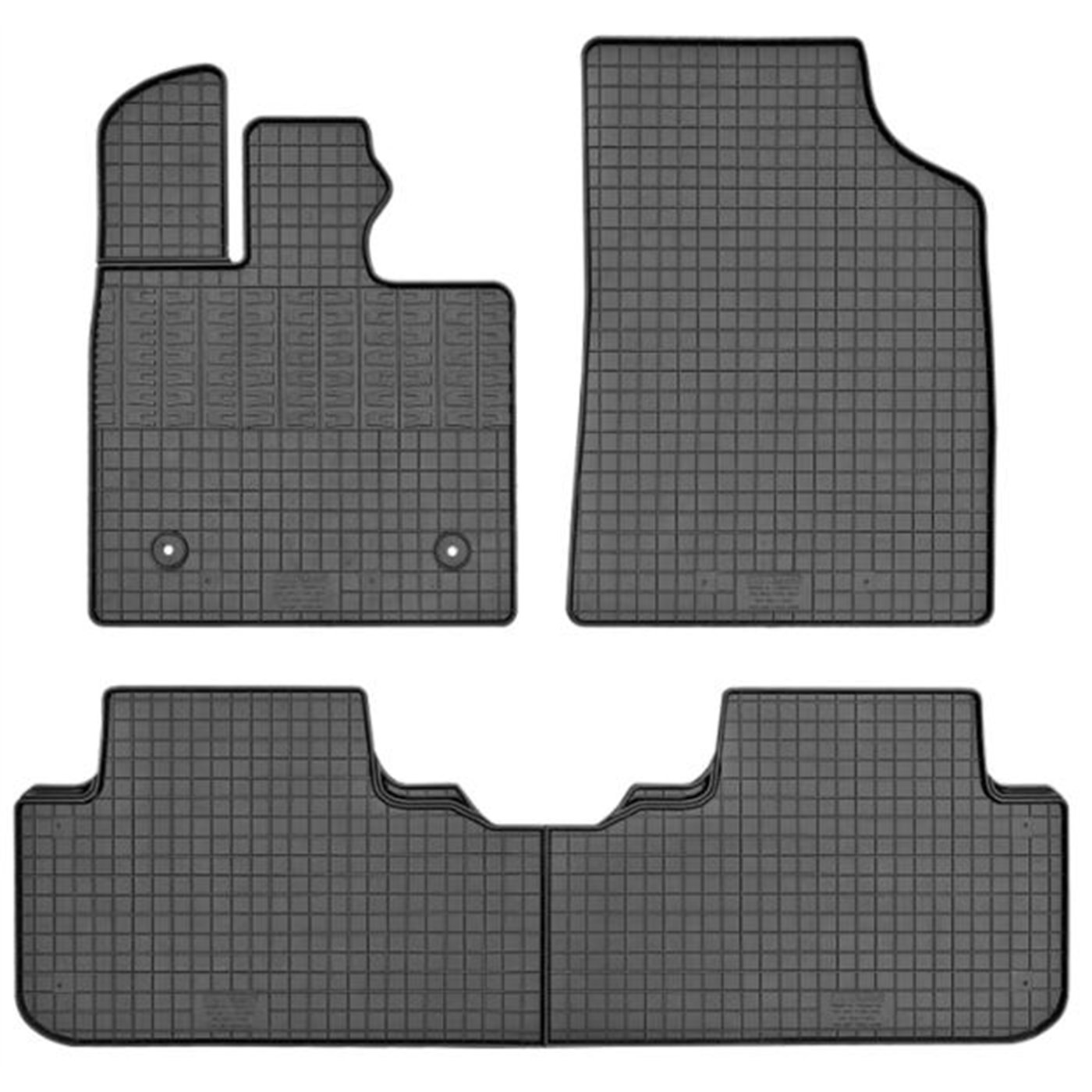 Serie completa 4 tappeti (anteriori+posteriori) in gomma di alta qualità, inodore e facili da pulire. Realizzati su misura: proteggono perfettamente il pianale della vettura senza ricorrere ad adattamenti. Con bottoni in plastica per il fissaggio ai fix point originali del veicolo. Per BYD Seal U 24>.