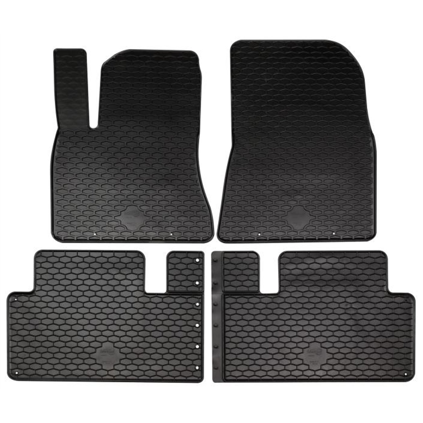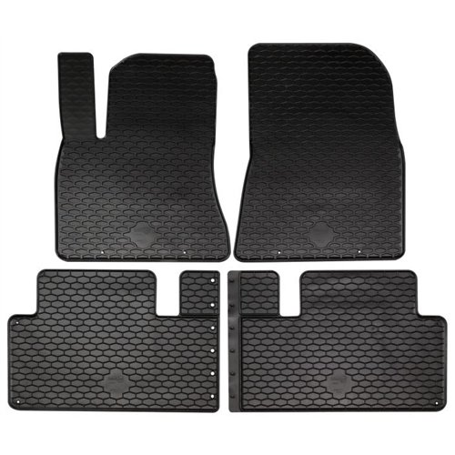 Serie completa 4 tappeti (anteriori+posteriori) in gomma termoplastica (TPE), un materiale innovativo 100% riciclabile e con una resistenza all'usura senza precedenti pur rimanendo leggero e flessibile. Realizzati su misura: proteggono perfettamente il pianale della vettura senza ricorrere ad adattamenti. Con bottoni in plastica per il fissaggio ai fix point originali del veicolo. Per TESLA Model 3 19>23, 23> (5YJ3).