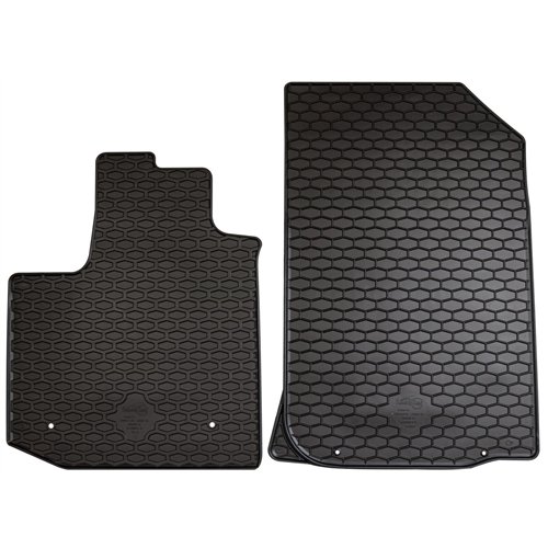 Coppia tappeti anteriori in gomma termoplastica (TPE), un materiale innovativo 100% riciclabile e con una resistenza all'usura senza precedenti pur rimanendo leggero e flessibile. Realizzati su misura: proteggono perfettamente il pianale senza ricorrere ad adattamenti. Con fori per il fissaggio ai fix point originali del veicolo. Per DACIA Dokker van 12>17, 17>.