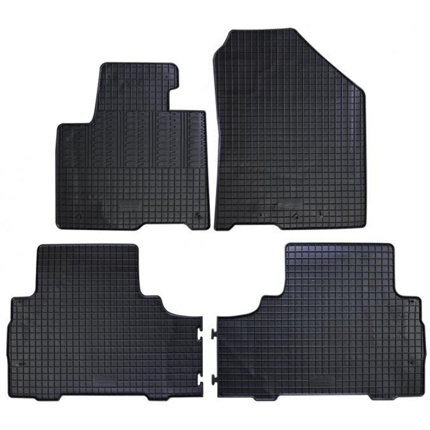 Serie completa 4 tappeti (anteriori+posteriori) in gomma di alta qualità, inodore e facili da pulire. Realizzati su misura: proteggono perfettamente il pianale della vettura senza ricorrere ad adattamenti. Con fori per il fissaggio ai fix point originali del veicolo. Per KIA Sorento III 15>17, 17> (ant. + post. seconda fila) (UM).