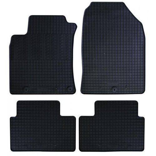 Serie completa 4 tappeti (anteriori+posteriori) in gomma di alta qualità, inodore e facili da pulire. Realizzati su misura: proteggono perfettamente il pianale della vettura senza ricorrere ad adattamenti. Con bottoni in plastica per il fissaggio ai fix point originali del veicolo. Per HYUNDAI i30 III / i30 III wagon / i30 III Fastback 17>24, 24> (PDE, PD, PDEN) (anche ibride).