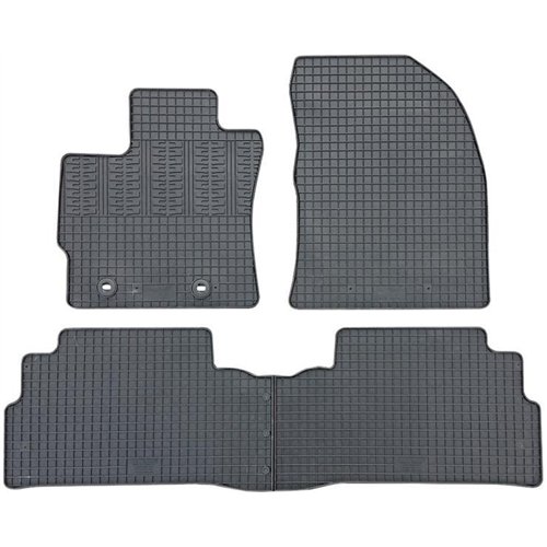 Serie completa 4 tappeti (anteriori+posteriori) in gomma di alta qualità, inodore e facili da pulire. Realizzati su misura: proteggono perfettamente il pianale della vettura senza ricorrere ad adattamenti. Con bottoni in plastica per il fissaggio ai fix point originali del veicolo. Per TOYOTA Verso 09>15, 15> (AR20).