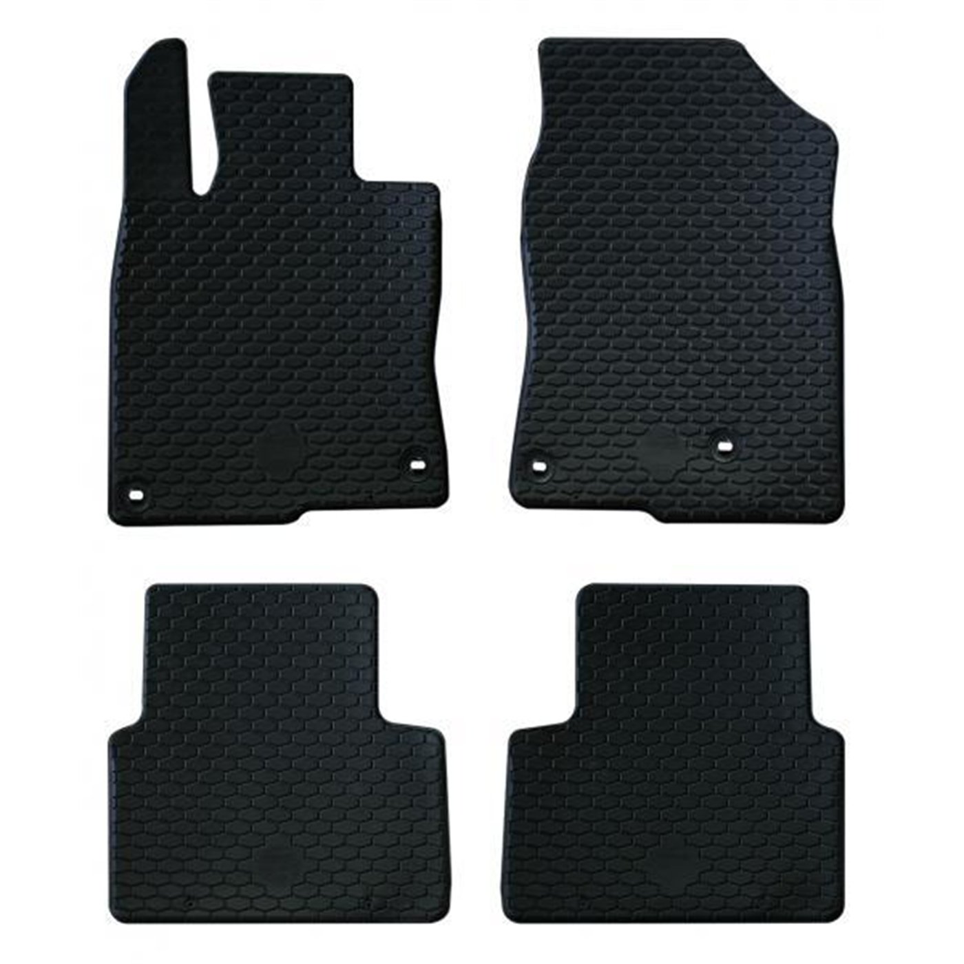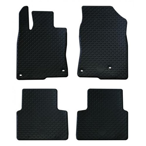 Serie completa 4 tappeti (anteriori+posteriori) in gomma di alta qualità, inodore e facili da pulire. Realizzati su misura: proteggono perfettamente il pianale della vettura senza ricorrere ad adattamenti. Con bottoni in plastica per il fissaggio ai fix point originali del veicolo. Per HONDA Civic 16>22, 22> (FC,FK, FL).
