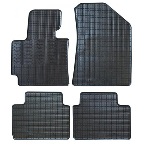 Serie completa 4 tappeti (anteriori+posteriori) in gomma di alta qualità, inodore e facili da pulire. Realizzati su misura: proteggono perfettamente il pianale senza ricorrere ad adattamenti. Con fori per il fissaggio ai fix point originali della vettura. Per KIA Soul II 14>20 (PS).