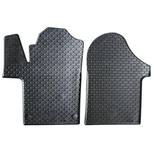 Coppia tappeti anteriori in gomma di alta qualità, inodore e facili da pulire. Realizzati su misura: proteggono perfettamente il pianale senza ricorrere ad adattamenti. Con bottoni in plastica per il fissaggio ai fix point originali del veicolo. Per MERCEDES Classe V 14> (W447), Viano / Vito 14> (W447) (anche eVito), EQV 20> (W447).