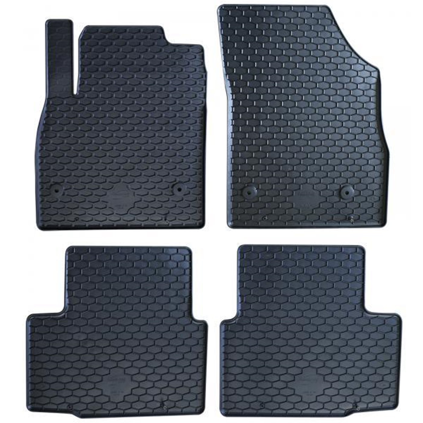 Serie completa 4 tappeti (anteriori+posteriori) in gomma di alta qualità, inodore e facili da pulire. Realizzati su misura: proteggono perfettamente il pianale senza ricorrere ad adattamenti. Con bottoni in plastica per il fissaggio ai fix point originali del veicolo. Per OPEL Astra K 5p. e S.W. 15>19, 19> (B16).