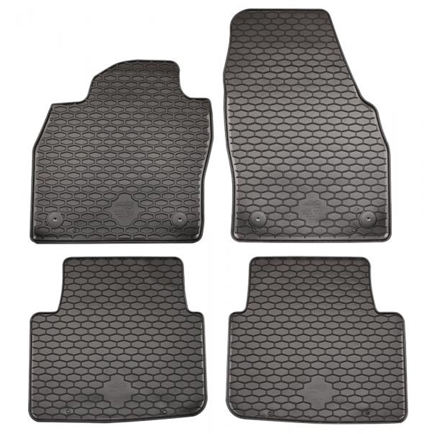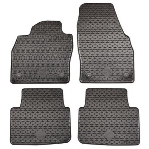Serie completa 4 tappeti (anteriori+posteriori) in gomma di alta qualità, inodore e facili da pulire. Realizzati su misura: proteggono perfettamente il pianale della vettura senza ricorrere ad adattamenti. Con bottoni in plastica per il fissaggio ai fix point originali del veicolo. Per SKODA Kamiq 19> (NW4), Scala 19>.