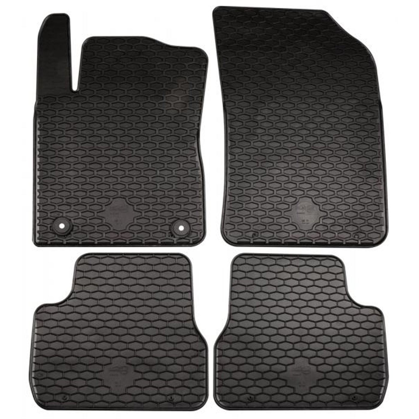 Serie completa 4 tappeti (anteriori+posteriori) in gomma di alta qualità, inodore e facili da pulire. Realizzati su misura: proteggono perfettamente il pianale della vettura senza ricorrere ad adattamenti. Con bottoni in plastica per il fissaggio ai fix point originali del veicolo. Per CITROEN C3 III 16>20, 20> (SX).