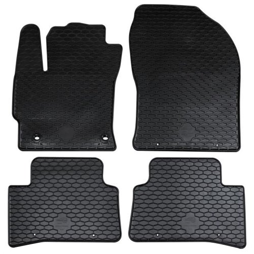 Serie completa 4 tappeti (anteriori+posteriori) in gomma di alta qualità, inodore e facili da pulire. Realizzati su misura: proteggono perfettamente il pianale della vettura senza ricorrere ad adattamenti. Con bottoni in plastica per il fissaggio ai fix point originali della vettura. Per TOYOTA Corolla Cross 22> (G10).