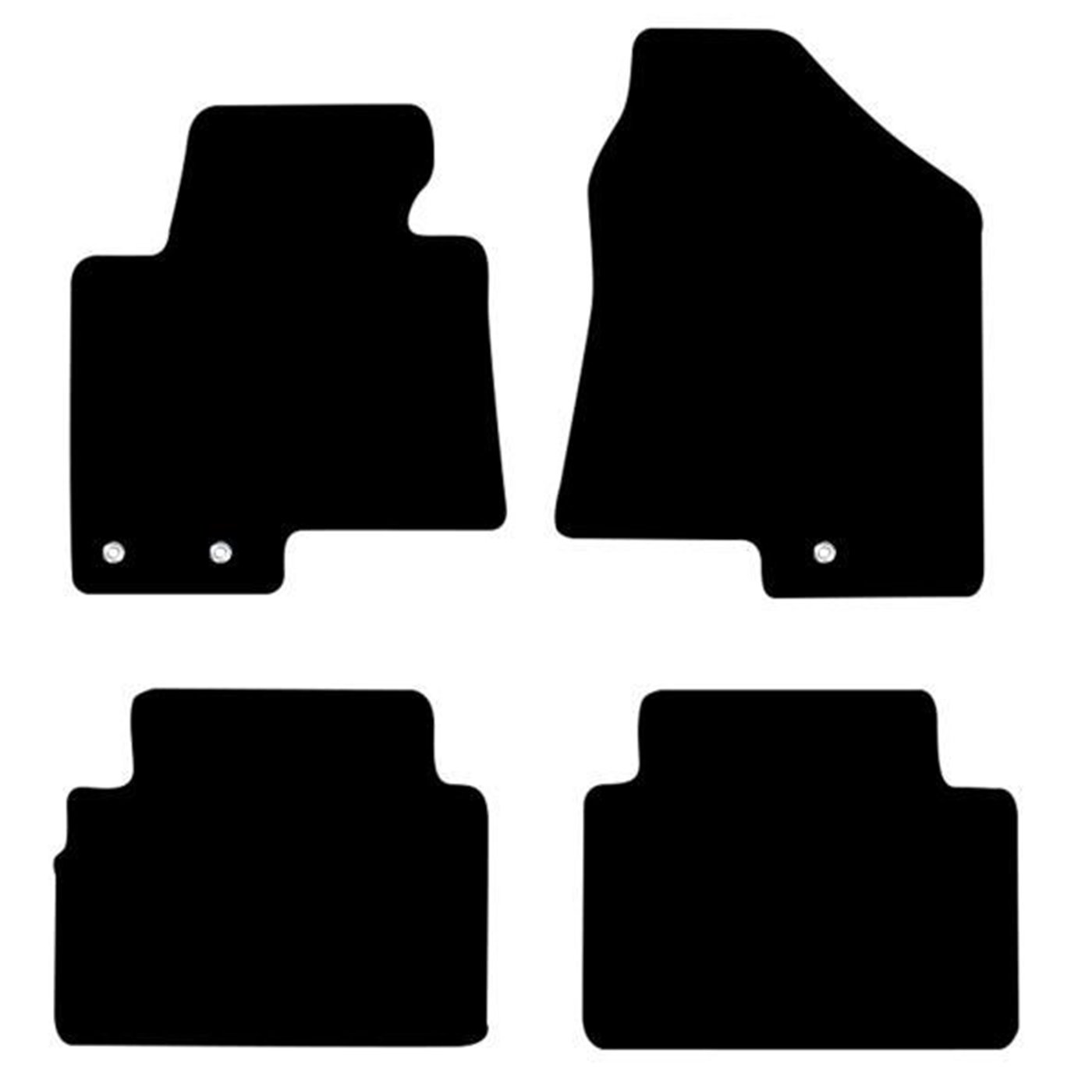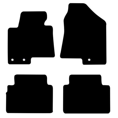 Serie completa 4 tappeti (anteriori+posteriori) in moquette automobilistica di alta qualità (650 gr/mq) con battitacco termosaldato, fondo granulare antiscivolo ed elegante bordatura perimetrale. Realizzati su misura: proteggono perfettamente il pianale della vettura senza ricorrere ad adattamenti. Provvisti di fissaggi per i fix point originali presenti sulla vettura: tali dispositivi impediscono al tappeto di scivolare in avanti prevenendo pericolosi inconvenienti durante la guida. Colore nero. Per HYUNDAI ix35 10>13, 13> (LM, EL, ELH) - KIA Sportage III 10>16 (SL).