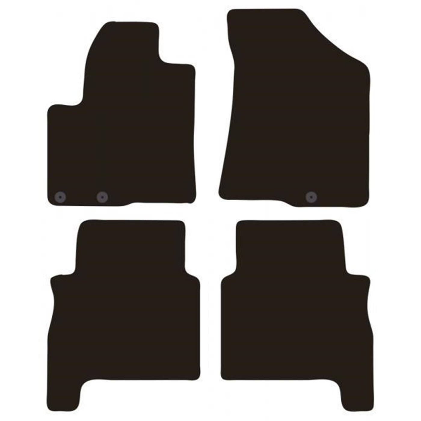 Serie completa 4 tappeti (anteriori+posteriori) in moquette automobilistica di alta qualità (650 gr/mq) con battitacco termosaldato, fondo granulare antiscivolo ed elegante bordatura perimetrale. Realizzati su misura: proteggono perfettamente il pianale della vettura senza ricorrere ad adattamenti. Provvisti di fissaggi per i fix point originali presenti sulla vettura: tali dispositivi impediscono al tappeto di scivolare in avanti prevenendo pericolosi inconvenienti durante la guida. Colore nero. Per HYUNDAI Santa Fe II 06>12 (CM).