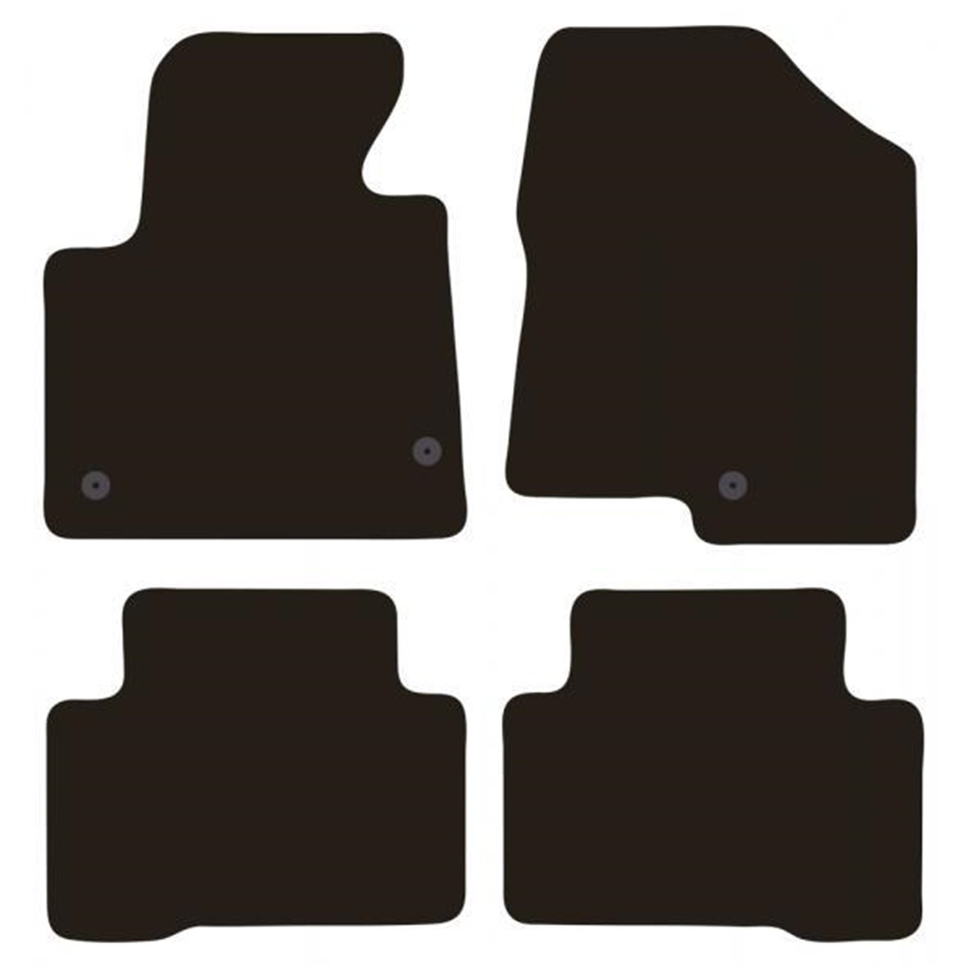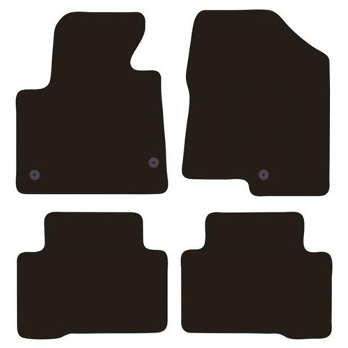 Serie completa 4 tappeti (anteriori+posteriori) in moquette automobilistica di alta qualità (650 gr/mq) con battitacco termosaldato, fondo granulare antiscivolo ed elegante bordatura perimetrale. Realizzati su misura: proteggono perfettamente il pianale della vettura senza ricorrere ad adattamenti. Provvisti di fissaggi per i fix point originali presenti sulla vettura: tali dispositivi impediscono al tappeto di scivolare in avanti prevenendo pericolosi inconvenienti durante la guida. Colore nero. Per HYUNDAI Santa Fe III 12>18 (DM, NC).