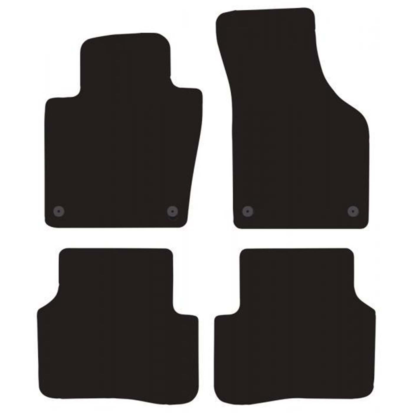 Serie completa 4 tappeti (anteriori+posteriori) in moquette automobilistica di alta qualità (650 gr/mq) con battitacco termosaldato, fondo granulare antiscivolo ed elegante bordatura perimetrale. Realizzati su misura: proteggono perfettamente il pianale della vettura senza ricorrere ad adattamenti. Provvisti di fissaggi per i fix point originali presenti sulla vettura: tali dispositivi impediscono al tappeto di scivolare in avanti prevenendo pericolosi inconvenienti durante la guida. Colore nero. Per VOLKSWAGEN Passat B6/B7 4p. e S.W. 05>14 (fix tondo) (3C, 3C2, 3C5, 362, 365), Passat CC 08>12 (fix tondo) (3C, 357).