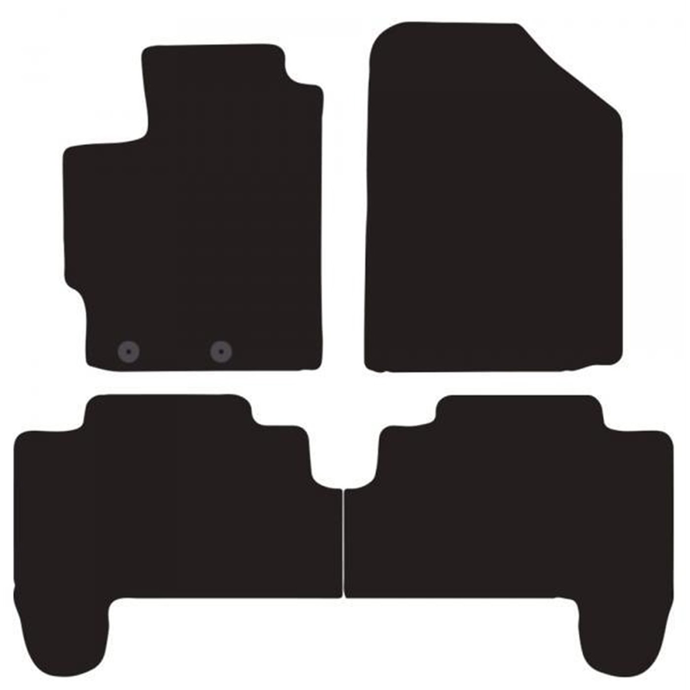 Serie completa 4 tappeti (anteriori+posteriori) in moquette automobilistica di alta qualità (650 gr/mq) con battitacco termosaldato, fondo granulare antiscivolo ed elegante bordatura perimetrale. Realizzati su misura: proteggono perfettamente il pianale della vettura senza ricorrere ad adattamenti. Provvisti di fissaggi per i fix point originali presenti sulla vettura: tali dispositivi impediscono al tappeto di scivolare in avanti prevenendo pericolosi inconvenienti durante la guida. Colore nero. Per TOYOTA Yaris II 3/5p. 05>11 (XP90).