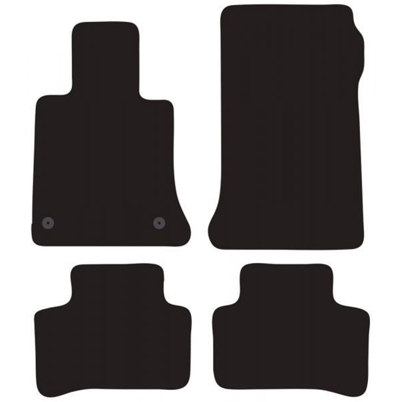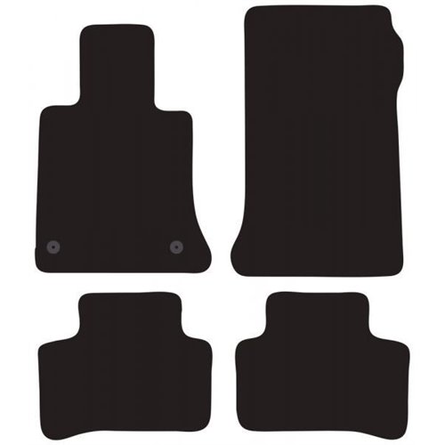 Serie completa 4 tappeti (anteriori+posteriori) in moquette automobilistica di alta qualità (650 gr/mq) con battitacco termosaldato, fondo granulare antiscivolo ed elegante bordatura perimetrale. Realizzati su misura: proteggono perfettamente il pianale della vettura senza ricorrere ad adattamenti. Provvisti di fissaggi per i fix point originali presenti sulla vettura: tali dispositivi impediscono al tappeto di scivolare in avanti prevenendo pericolosi inconvenienti durante la guida. Colore nero. Per MERCEDES GLK 08>12, 12> (X204).