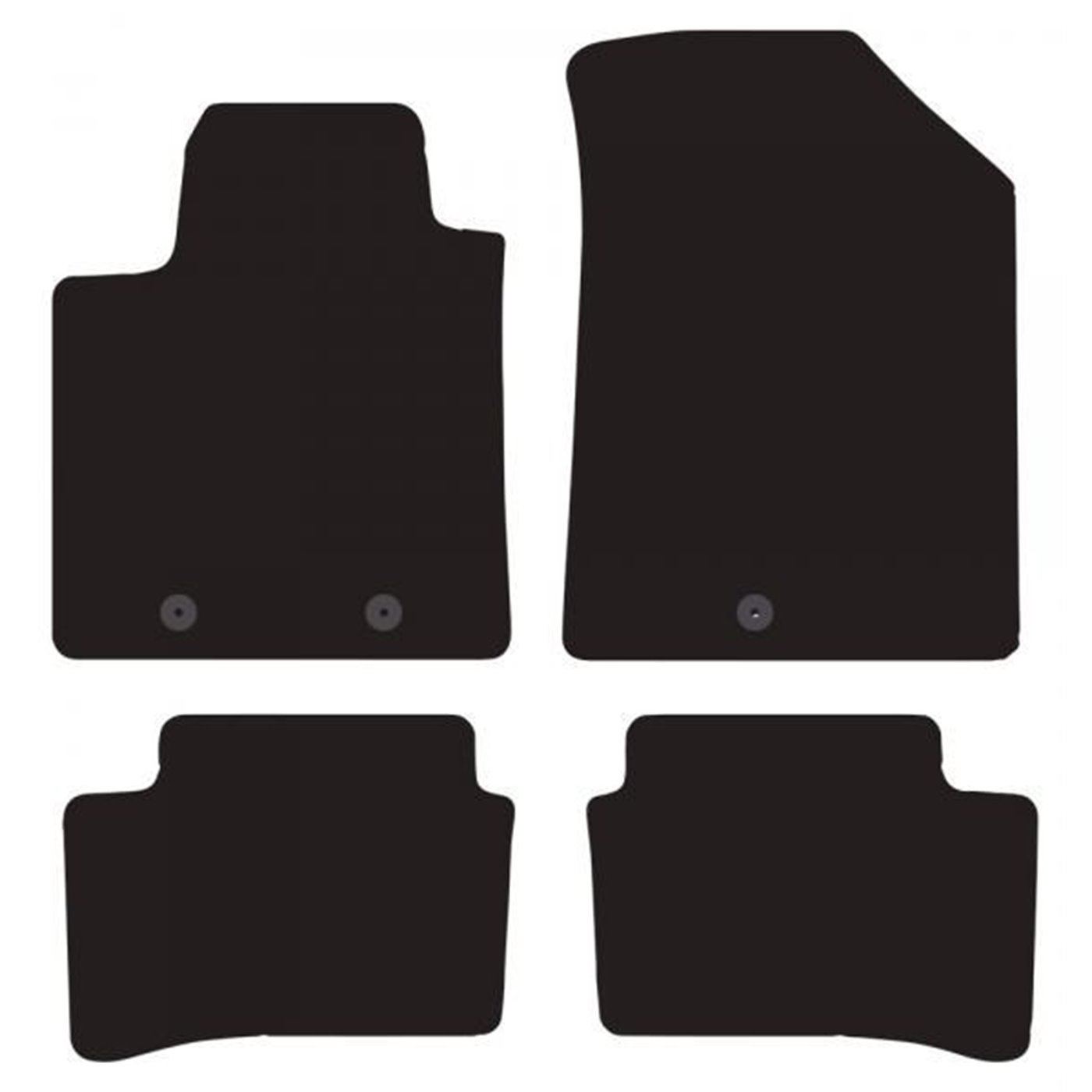 Serie completa 4 tappeti (anteriori+posteriori) in moquette automobilistica di alta qualità (650 gr/mq) con battitacco termosaldato, fondo granulare antiscivolo ed elegante bordatura perimetrale. Realizzati su misura: proteggono perfettamente il pianale della vettura senza ricorrere ad adattamenti. Provvisti di fissaggi per i fix point originali presenti sulla vettura: tali dispositivi impediscono al tappeto di scivolare in avanti prevenendo pericolosi inconvenienti durante la guida. Colore nero. Per HYUNDAI i10 II 13>20 (IA, BA).
