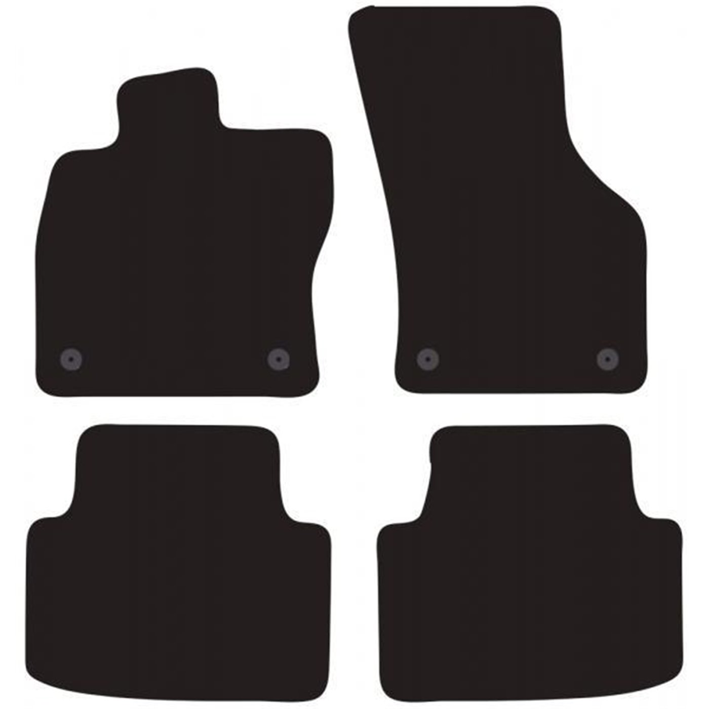 Serie completa 4 tappeti (anteriori+posteriori) in moquette automobilistica di alta qualità (650 gr/mq) con battitacco termosaldato, fondo granulare antiscivolo ed elegante bordatura perimetrale. Realizzati su misura: proteggono perfettamente il pianale della vettura senza ricorrere ad adattamenti. Provvisti di fissaggi per i fix point originali presenti sulla vettura: tali dispositivi impediscono al tappeto di scivolare in avanti prevenendo pericolosi inconvenienti durante la guida. Colore nero. Per VOLKSWAGEN Passat B8 4p. e S.W. 14>19, 19> (3G).