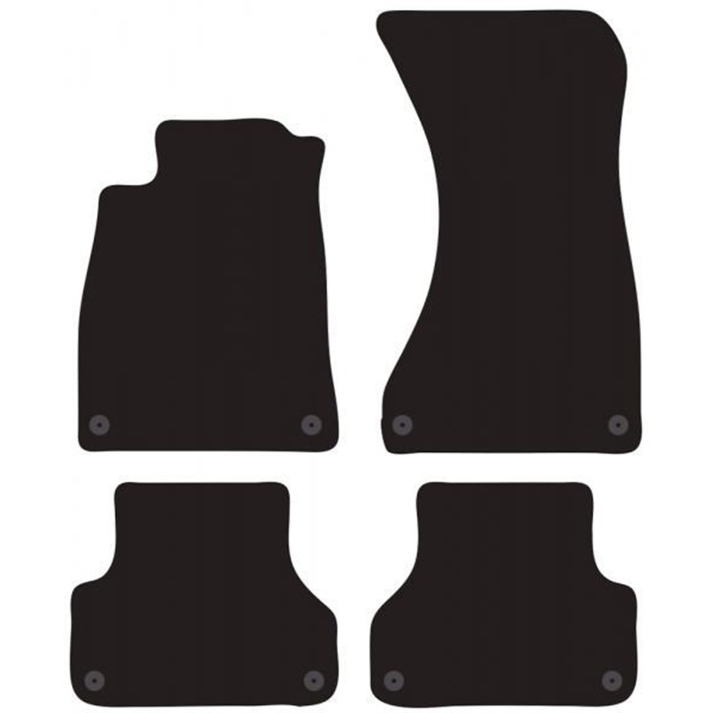 Serie completa 4 tappeti (anteriori+posteriori) in moquette automobilistica di alta qualità (650 gr/mq) con battitacco termosaldato, fondo granulare antiscivolo ed elegante bordatura perimetrale. Realizzati su misura: proteggono perfettamente il pianale della vettura senza ricorrere ad adattamenti. Provvisti di fissaggi per i fix point originali presenti sulla vettura: tali dispositivi impediscono al tappeto di scivolare in avanti prevenendo pericolosi inconvenienti durante la guida. Colore nero. Per AUDI A4 4p. e Avant 15>24 (B9, 8W).
