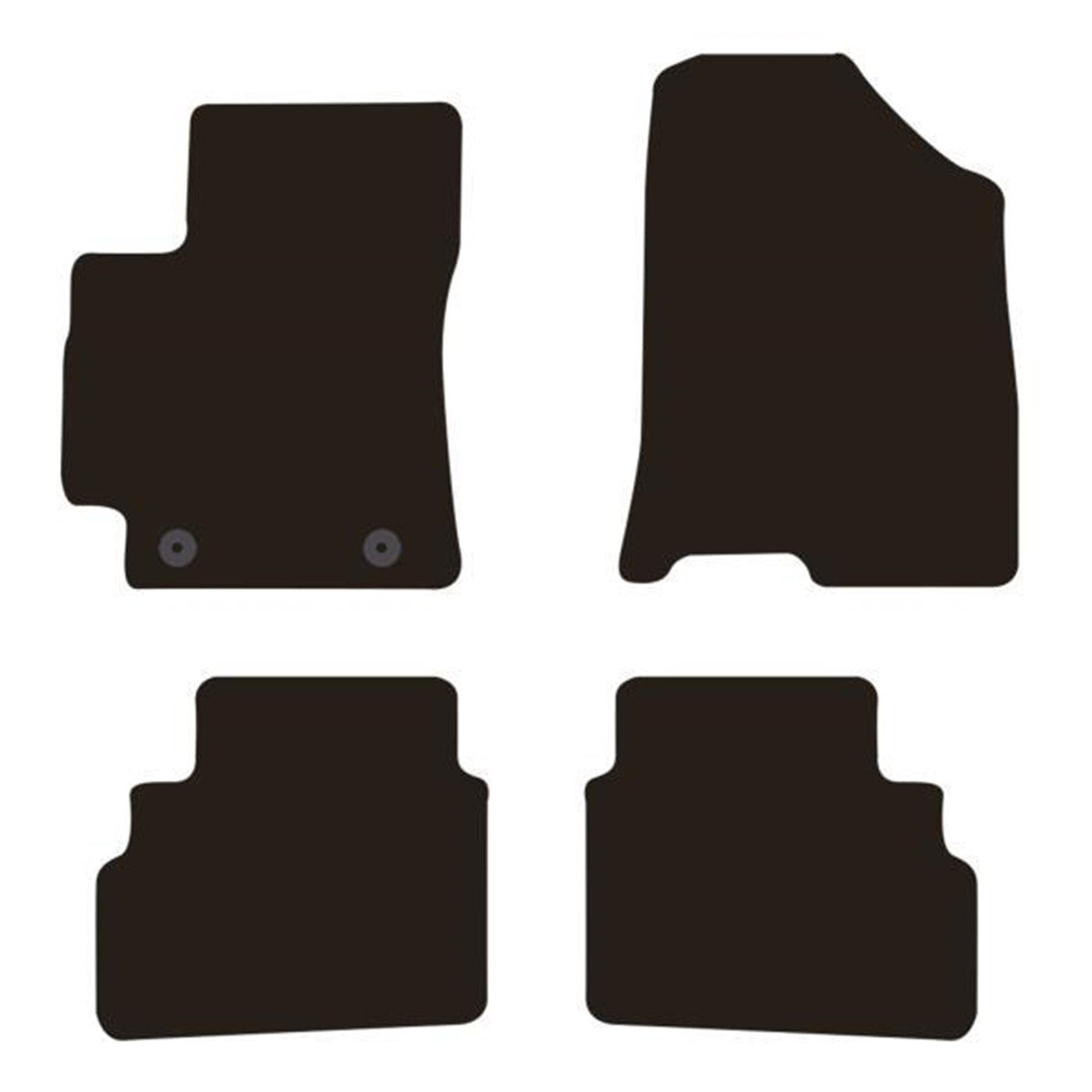 Serie completa 4 tappeti (anteriori+posteriori) in moquette automobilistica di alta qualità (650 gr/mq) con battitacco termosaldato, fondo granulare antiscivolo ed elegante bordatura perimetrale. Realizzati su misura: proteggono perfettamente il pianale della vettura senza ricorrere ad adattamenti. Provvisti di fissaggi per i fix point originali presenti sulla vettura: tali dispositivi impediscono al tappeto di scivolare in avanti prevenendo pericolosi inconvenienti durante la guida. Colore nero. Per HYUNDAI Kona 23> (SX2) (anche ibrida, no elettrica).