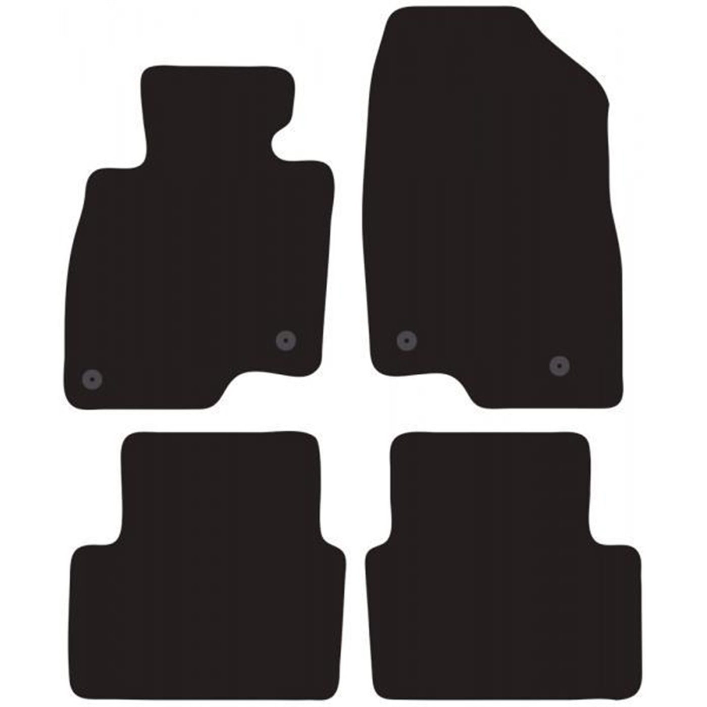 Serie completa 4 tappeti (anteriori+posteriori) in moquette automobilistica di alta qualità (650 gr/mq) con battitacco termosaldato, fondo granulare antiscivolo ed elegante bordatura perimetrale. Realizzati su misura: proteggono perfettamente il pianale della vettura senza ricorrere ad adattamenti. Provvisti di fissaggi per i fix point originali presenti sulla vettura: tali dispositivi impediscono al tappeto di scivolare in avanti prevenendo pericolosi inconvenienti durante la guida. Colore nero. Per MAZDA 3 5p. 13>19 (BM).