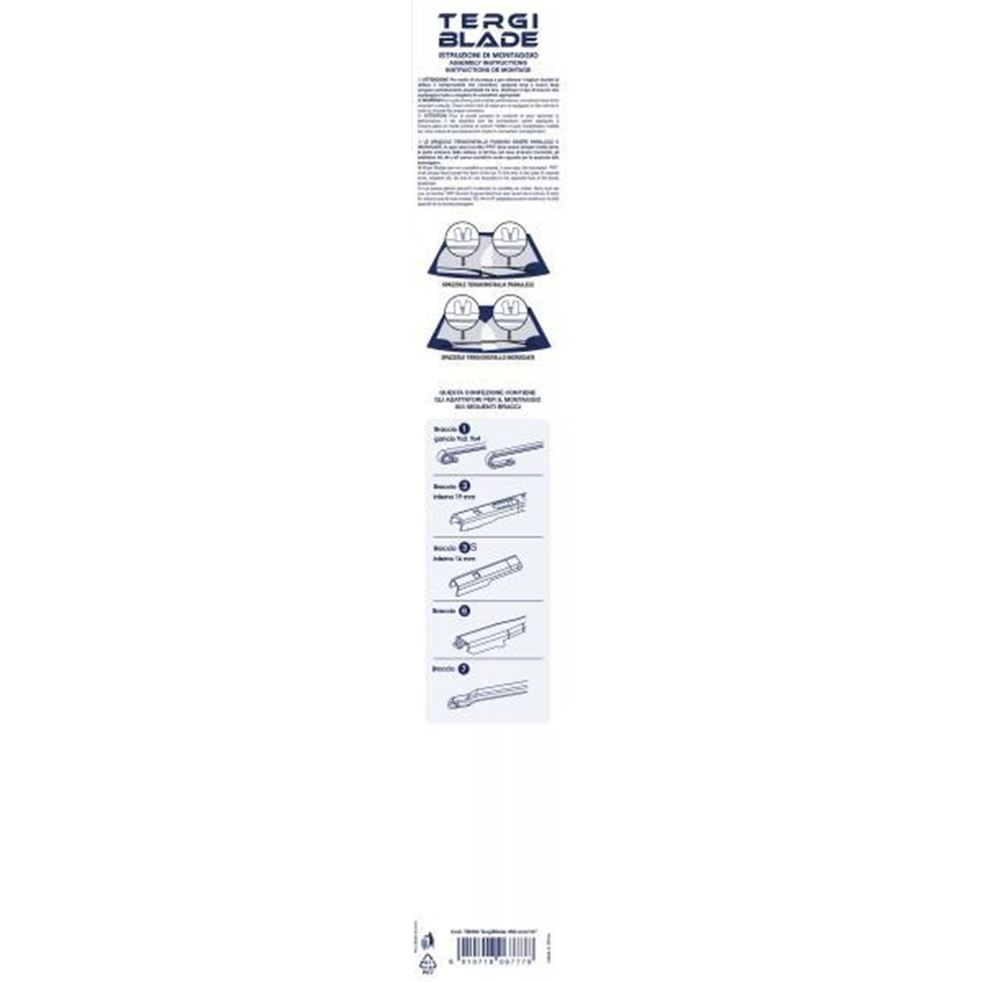 - Provvista di un kit di adattatori per consentire il montaggio sulla quasi totalità dei bracci tergicristallo