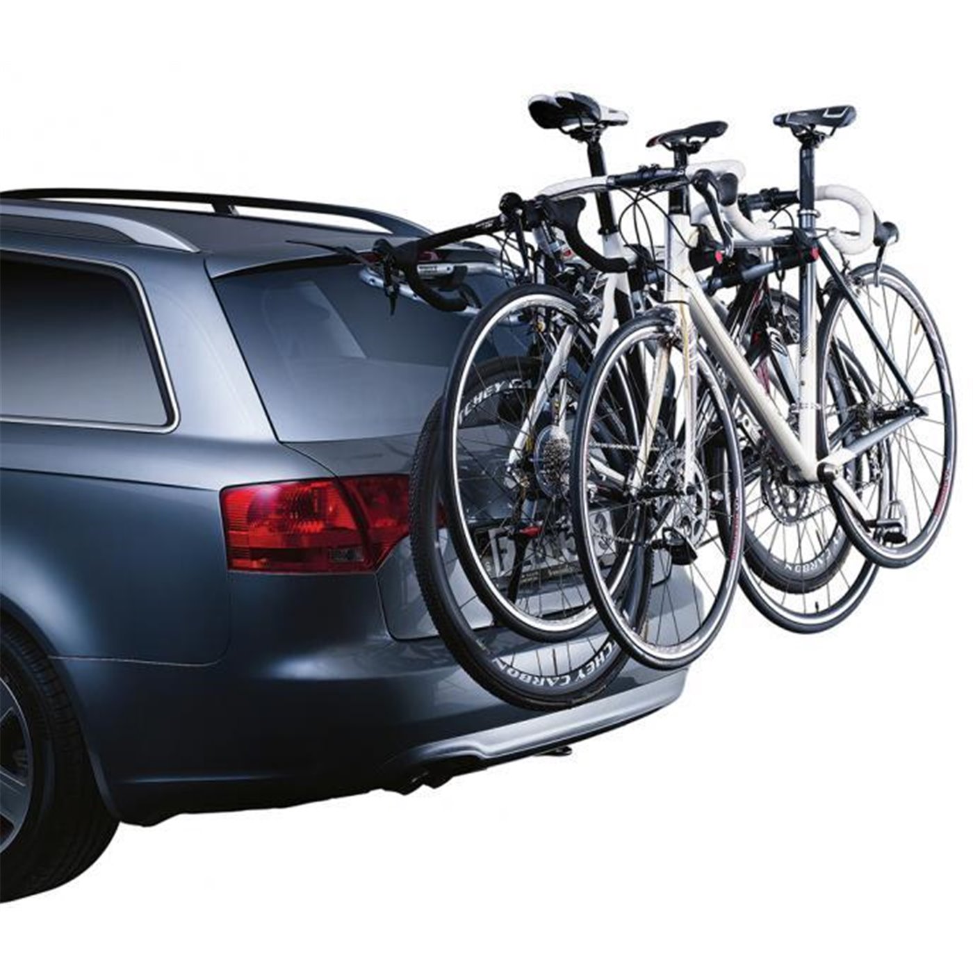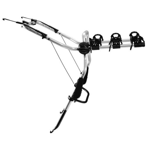 Portabici da portellone posteriore per 3 bici, ideale per station wagon ed auto due volumi. Si monta facilmente su numerosi modelli di auto grazie all'esclusivo sistema di fissaggio Snap-On (per l'elenco delle vetture compatibili consultare la Guida all'Acquisto Thule o il sito www.thule.com). Massima protezione durante il trasporto in quanto tutte le parti a contatto con auto e bici sono rivestite in gomma antigraffio. Robuste cinghie per il fissaggio delle bici in dotazione. Completamente ripiegabile per semplificare rimessaggio e trasporto. Facile accesso al bagagliaio con il portabici e le bici montate. Possibilità di assicurare le bici al portabici grazie al cavo antifurto opzionale cod. 600000538. Compatibile con l'accessorio portatarga con luci cod. 600000976. Adatto per telai con tubi di qualsiasi dimensione. Portata: 45 kg. Dimensioni: 77 x 57 x 97 cm (17 x 57 x 106 cm chiuso). Peso: 6,1.