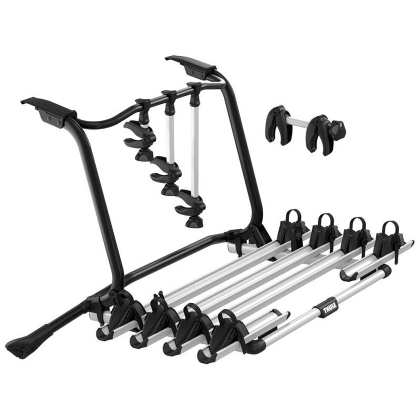 Adattatore che consente di trasportare la quarta bici sul portabici WonderWay. Kit costituito da una canalina poggiaruote regolabile con fibbie a cricchetto e da un braccio fermabici amovibile dotato di pomello con limitatore di coppia Thule AcuTight antifurto che scatta in posizione quando viene raggiunta la coppia di serraggio ottimale. Portata max 15 kg.
