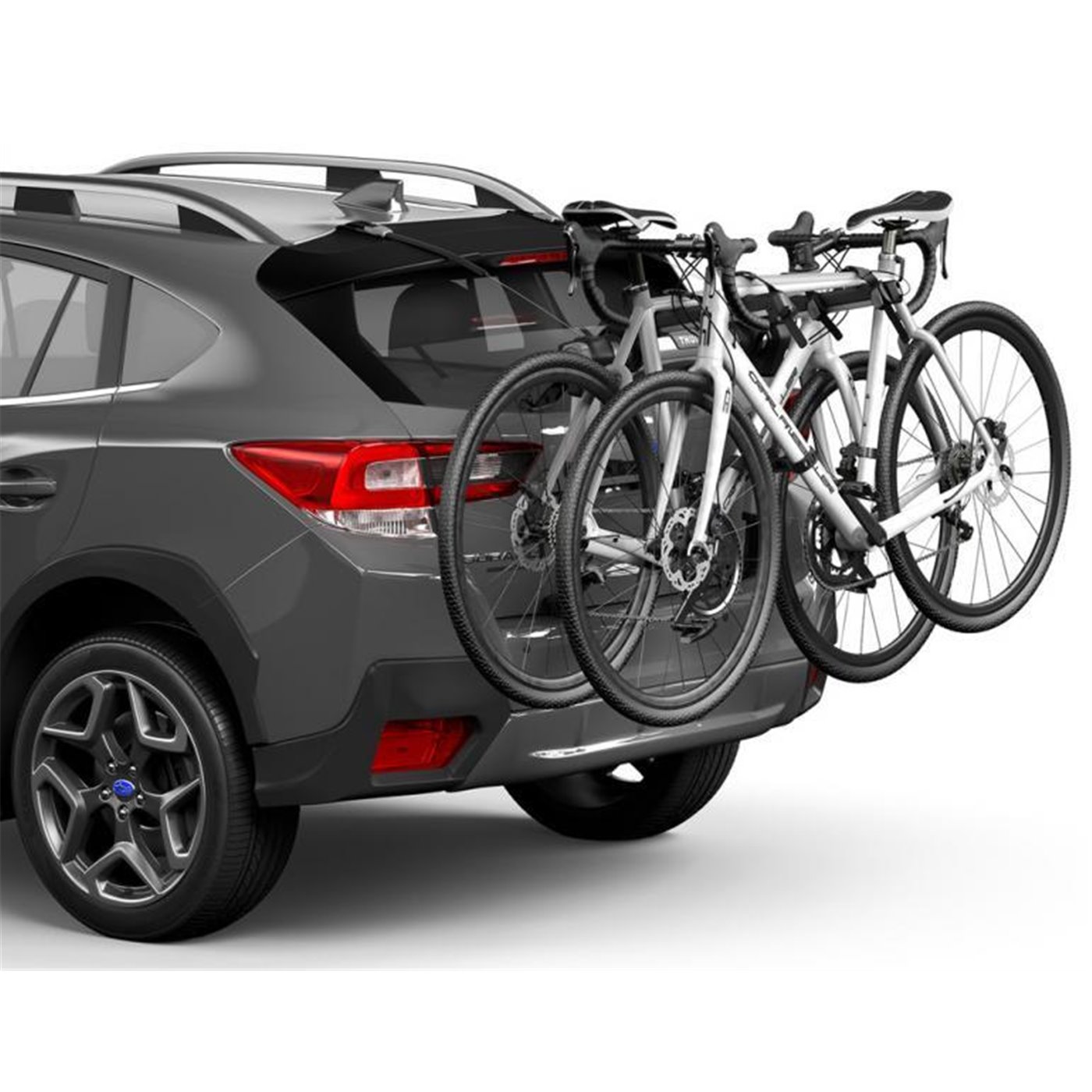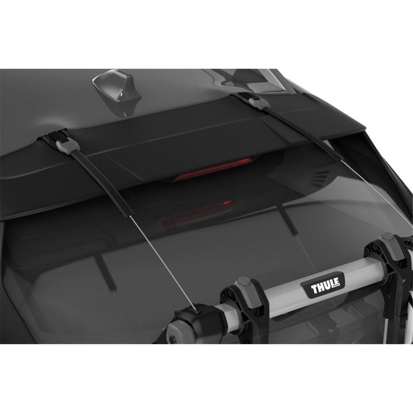 Portabici da portellone posteriore per 2 bici, adatto ad un'ampia gamma di veicoli compresi quelli con spoiler. Semplice e veloce da montare, con doppi ganci, cavi in acciaio rivestiti in gomma e sistema di serraggio AcuTight con limitatore di coppia che scatta quando viene raggiunta la coppia ottimale. Compatibile con molti telai/forme di biciclette, comprese quelle per bambini molto piccoli, grazie ai bracci regolabili. Massima protezione delle bici grazie alle base di appoggio morbide che assorbono gli urti e le vibrazioni della strada ed al sistema anti-oscillazione integrato che impedisce il contatto bici con bici e bici con veicolo. Provvisto di serrature antifurto (portabici su portellone e bici su portabici). Consente l'apertura del bagaglio quando le bici non sono caricate. DATI TECNICI: portata 30 kg - peso max bici 15 kg - dimensioni aperto 62x78x78,5 cm - dimensioni ripiegato 24x78x53 cm - peso 8,3 kg.