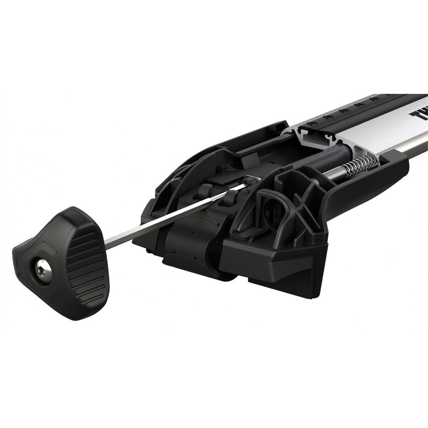 Set 4 piedi per barre portatutto Thule Wing Bar Edge. Specifico per auto con barre longitudinali. Serrature incluse. Portata: 75 kg.